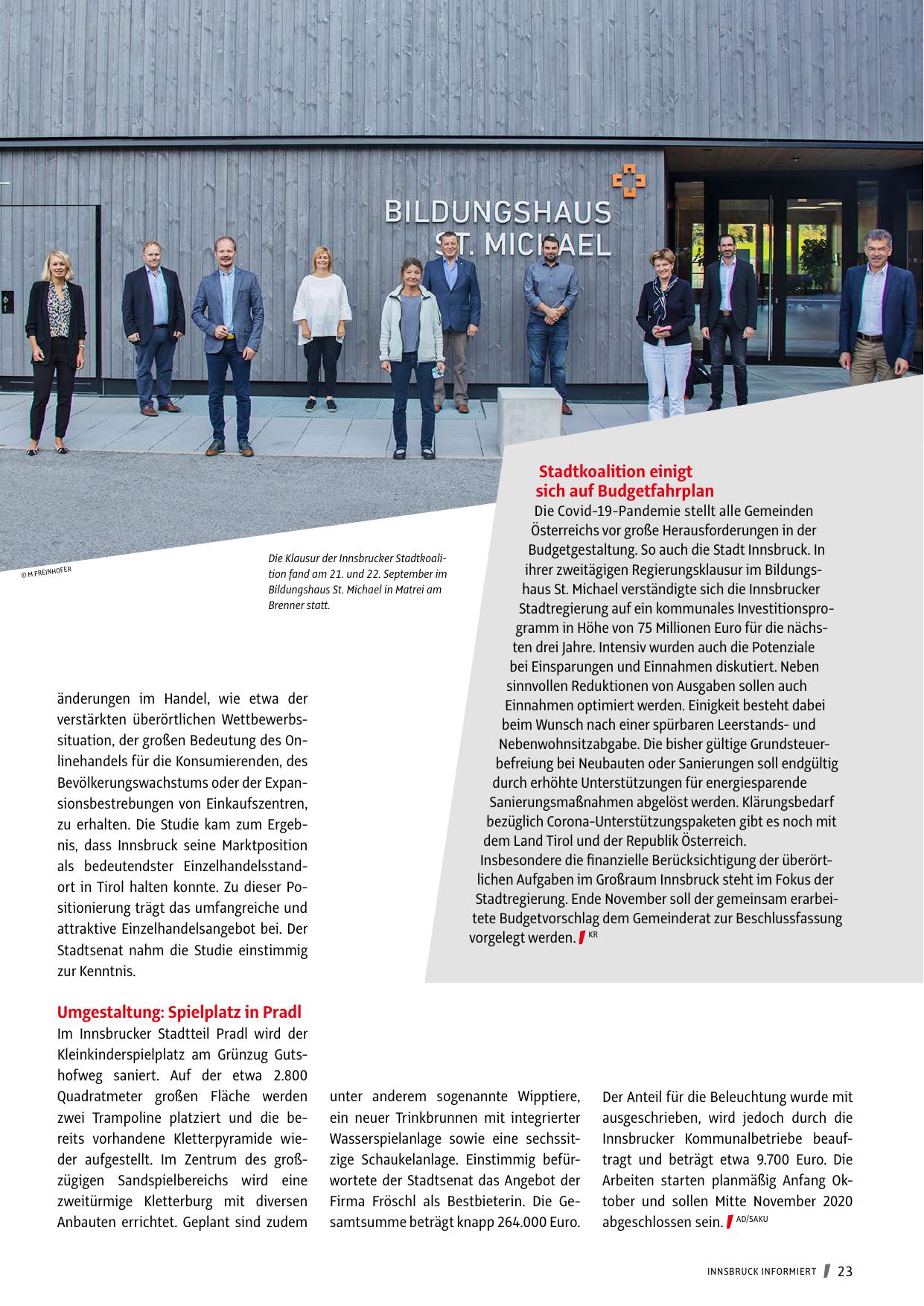 ihrer zweitägigen Regierungsklausur im Bildungshaus St. Michael verständigte sich die Innsbrucker