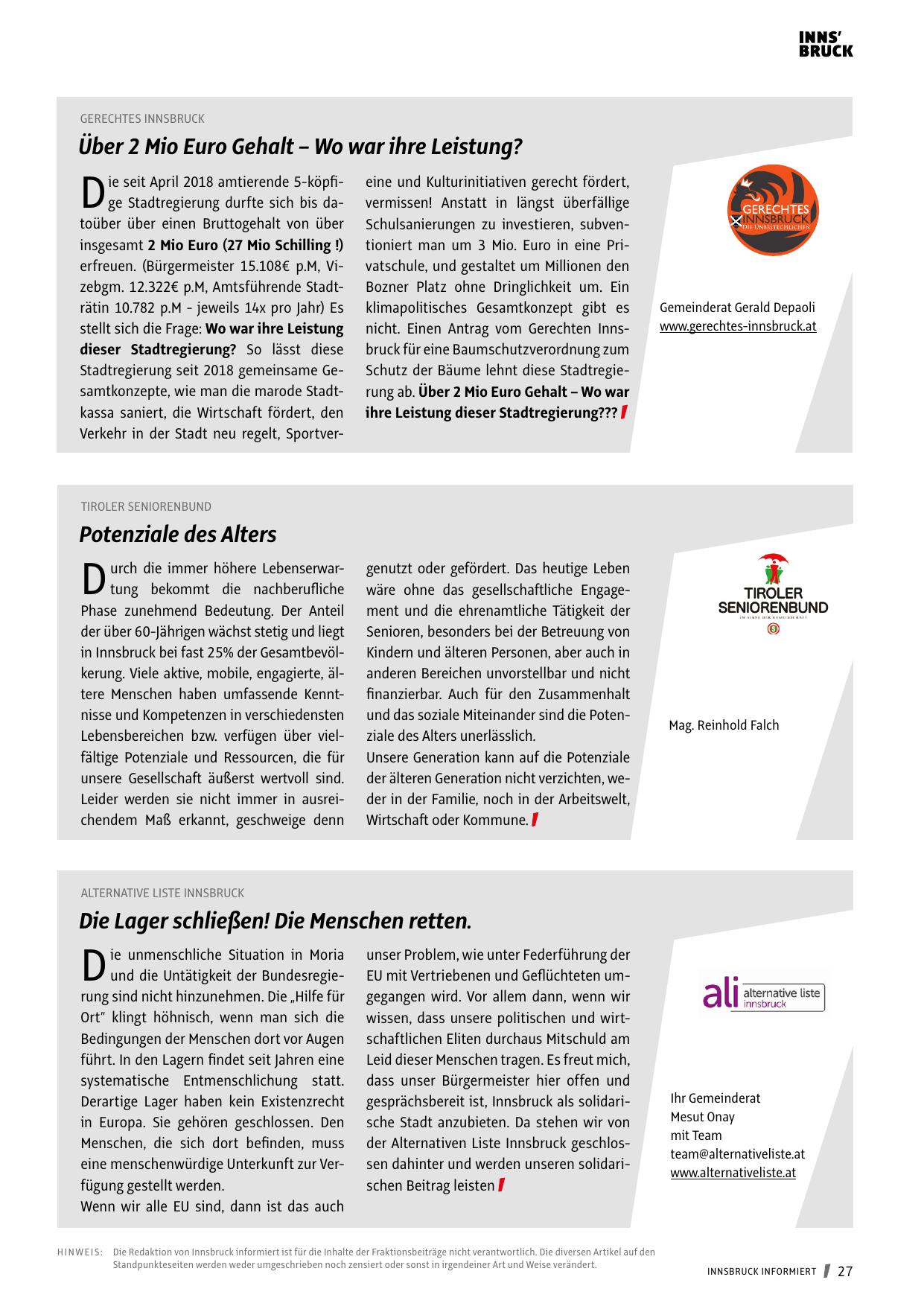 H I N W EI S : Die Redaktion von Innsbruck informiert ist für die Inhalte der Fraktionsbeiträge nicht verantwortlich. Die diversen Artikel auf den