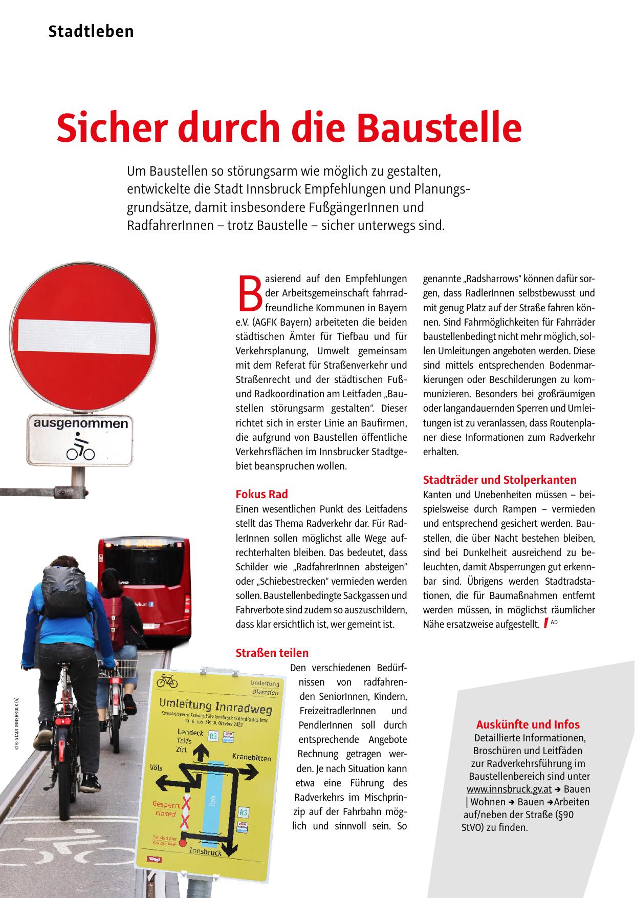 Straßenrecht und der städtischen Fußund Radkoordination am Leitfaden „Baustellen störungsarm gestalten“. Dieser
