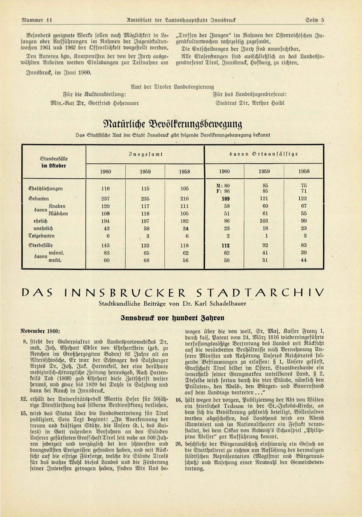 Oaa Statistischr Aint der Sla^t Innsbruck 9>bt folgende