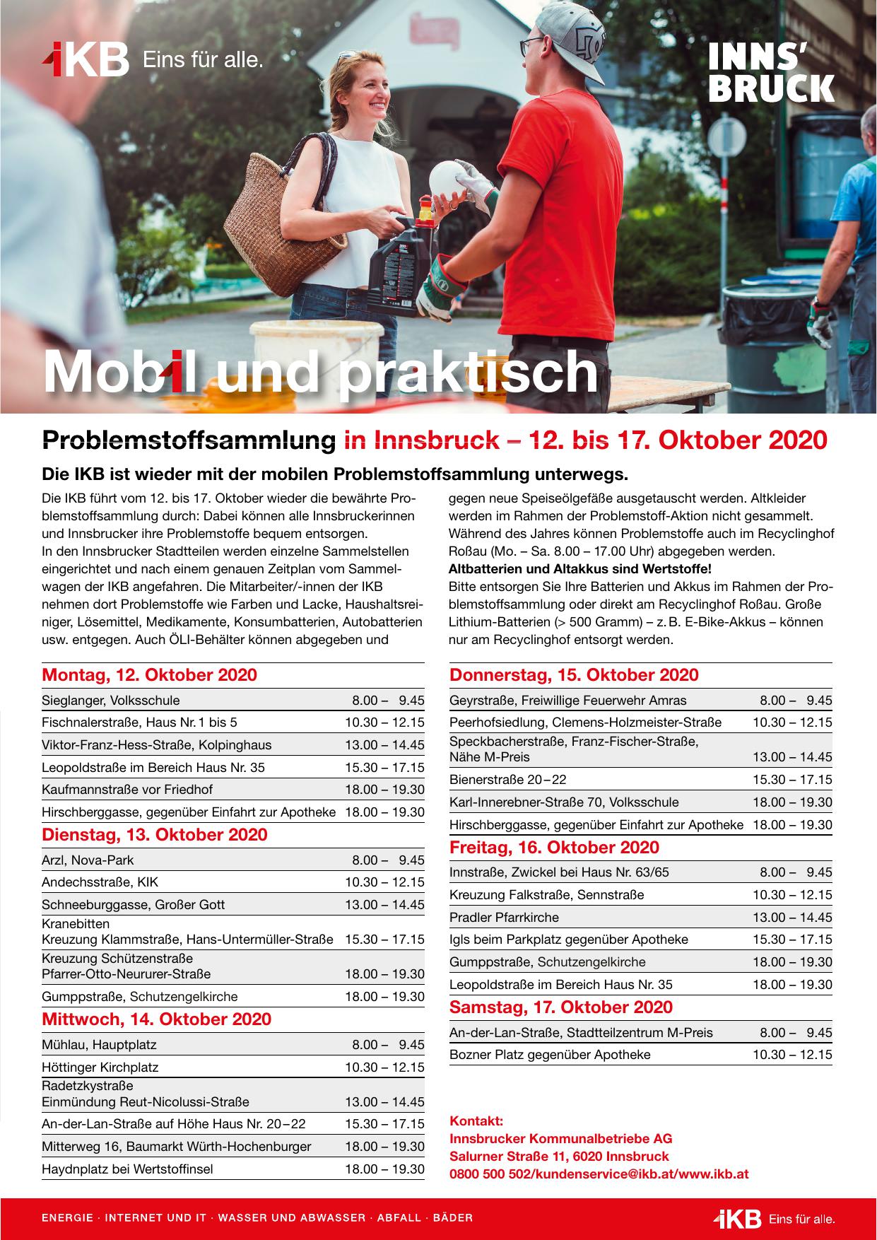 Die IKB führt vom 12. bis 17. Oktober wieder die bewährte Problemstoffsammlung durch: Dabei können alle Innsbruckerinnen