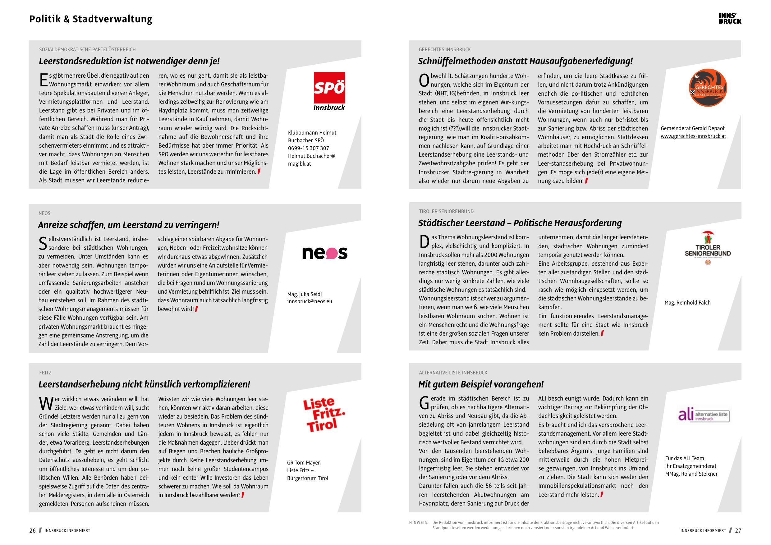 H I N W EI S : Die Redaktion von Innsbruck informiert ist für die Inhalte der Fraktionsbeiträge nicht verantwortlich. Die diversen Artikel auf den