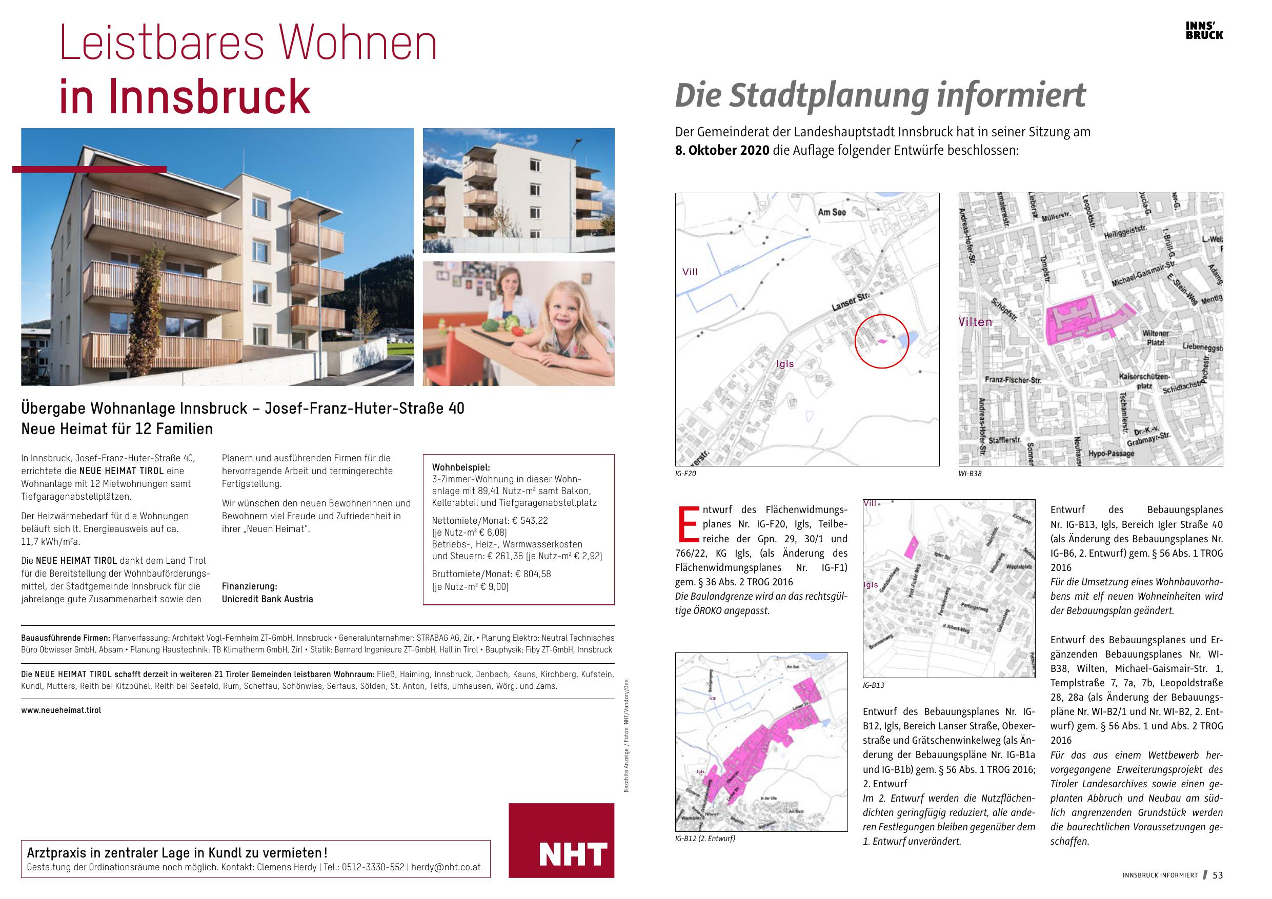 Die NEUE HEIMAT TIROL schafft derzeit in weiteren 21 Tiroler Gemeinden leistbaren Wohnraum: Fließ, Haiming, Innsbruck, Jenbach, Kauns, Kirchberg, Kufstein,