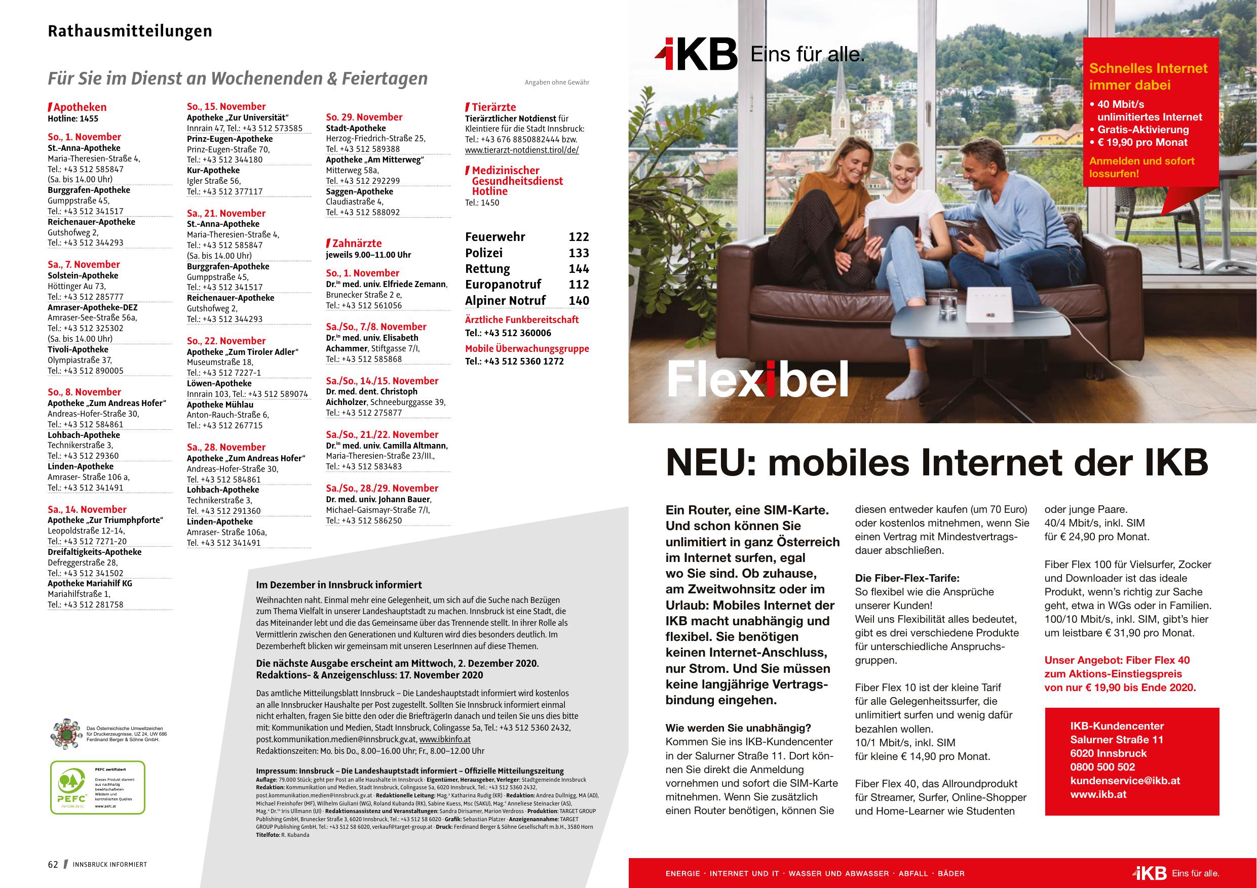 Impressum: Innsbruck – Die Landeshauptstadt informiert – Offizielle Mitteilungszeitung