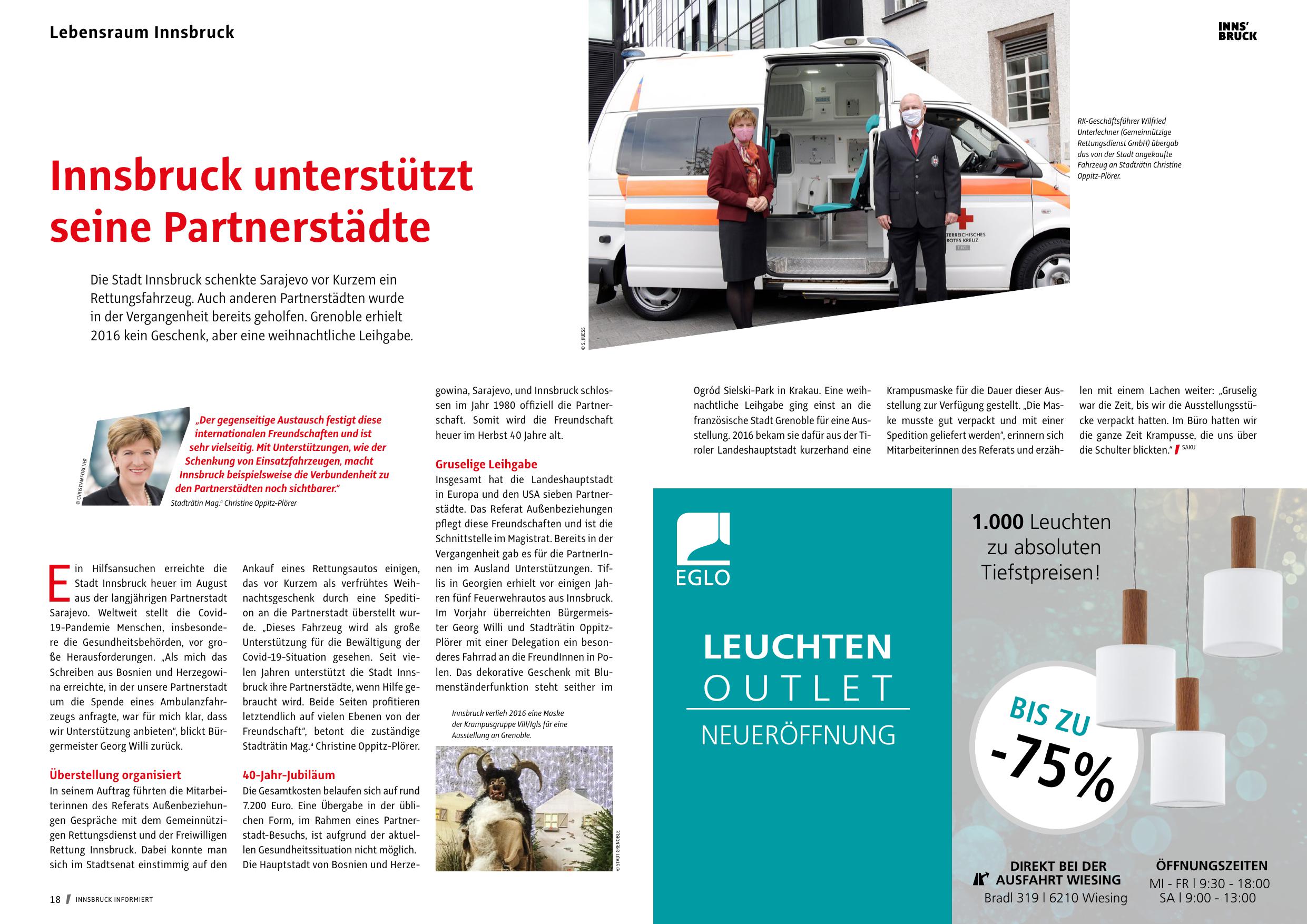 Covid-19-Situation gesehen. Seit vielen Jahren unterstützt die Stadt Innsbruck ihre Partnerstädte, wenn Hilfe gebraucht wird. Beide Seiten profitieren