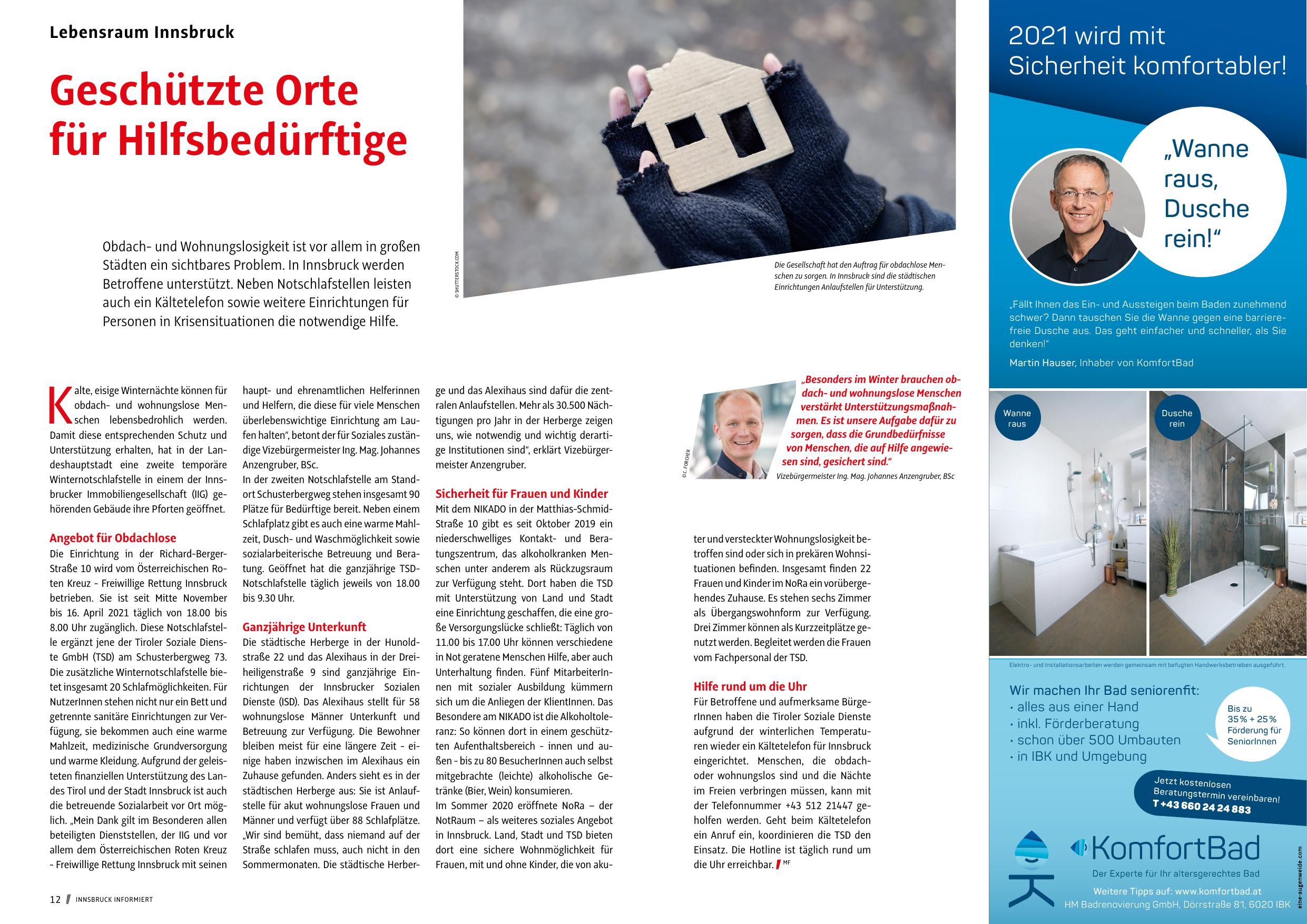 8.00 Uhr zugänglich. Diese Notschlafstelle ergänzt jene der Tiroler Soziale Dienste GmbH (TSD) am Schusterbergweg 73.