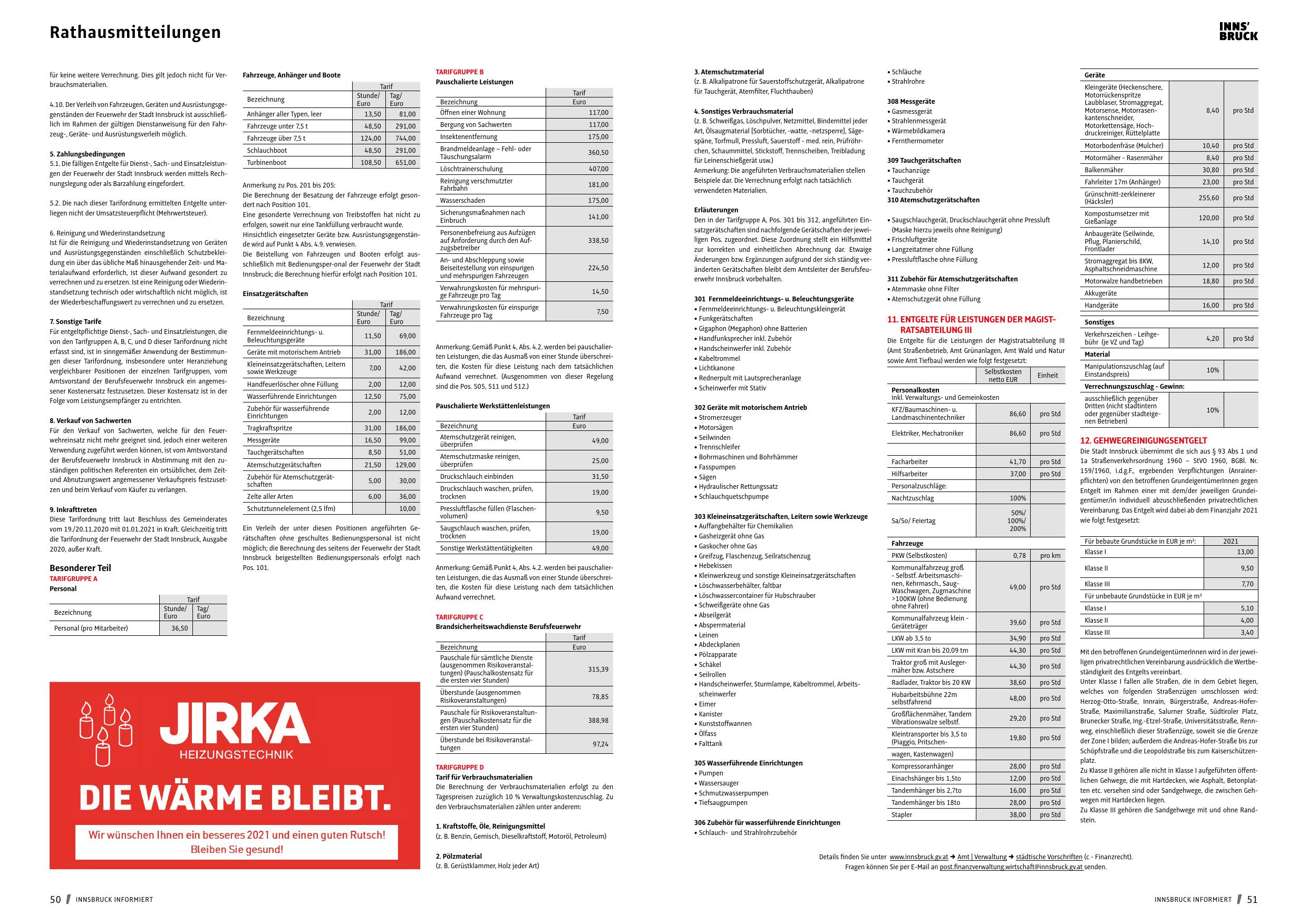 die Tarifordnung der Feuerwehr der Stadt Innsbruck, Ausgabe
