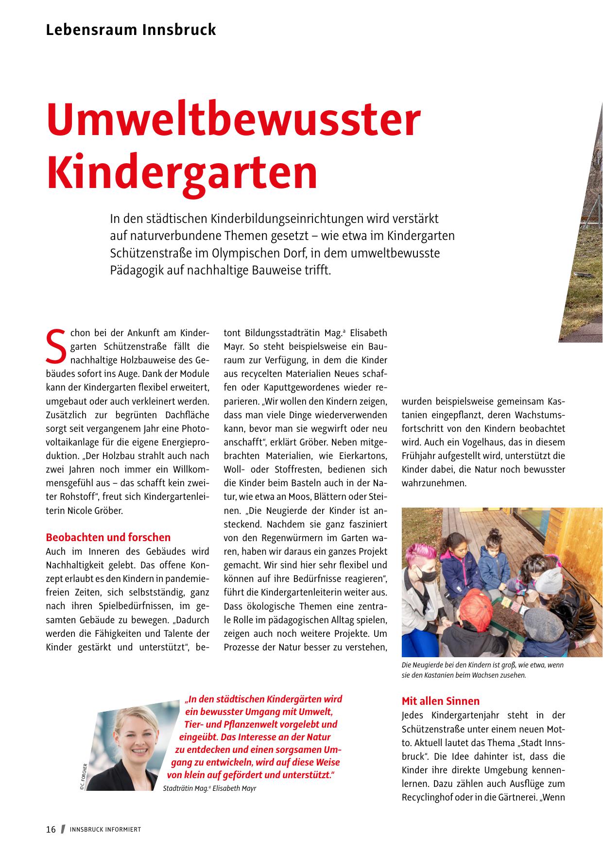 auf naturverbundene Themen gesetzt – wie etwa im Kindergarten