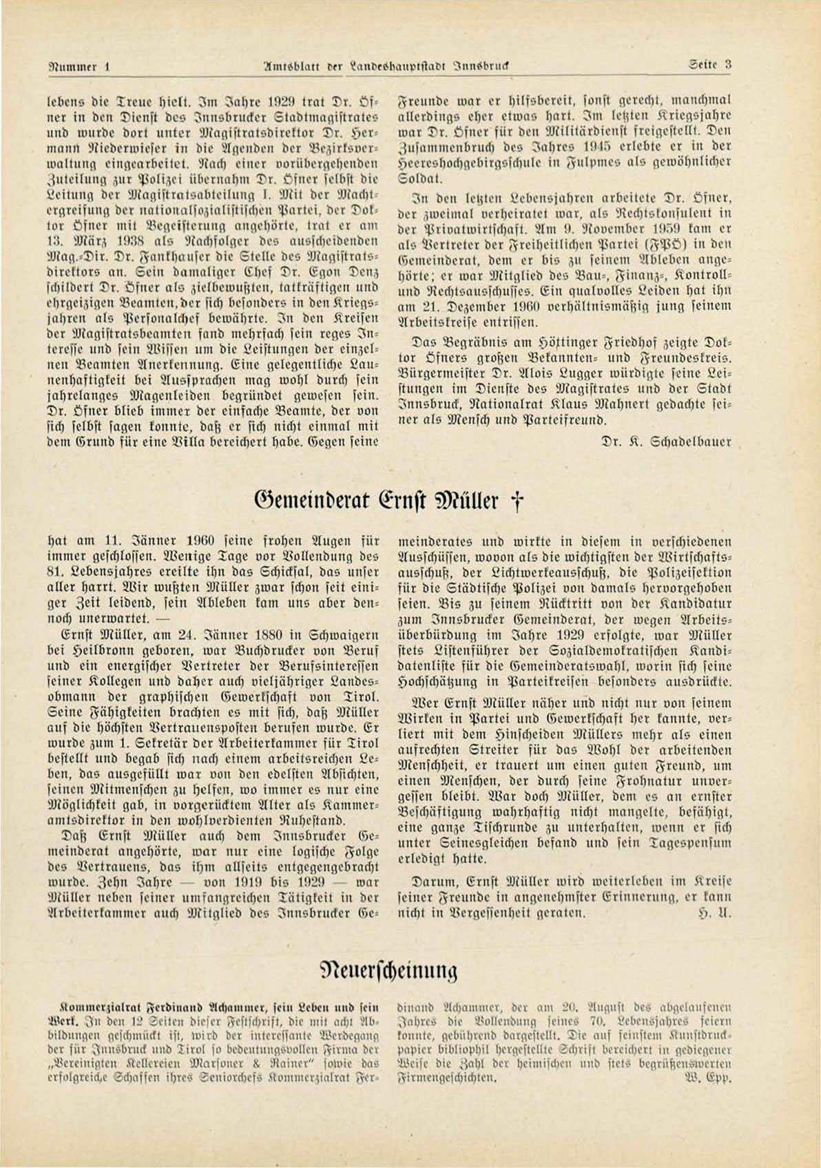 zum Innsbrucker Gemeinderat, der wegen Arbeitsüberbürdung im Jahre 1929 erfolgte, war Müller