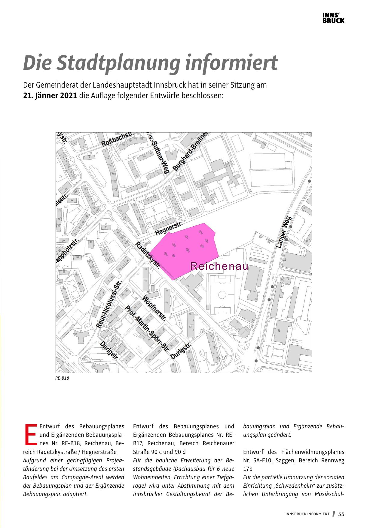 und Ergänzenden Bebauungsplanes Nr. RE-B18, Reichenau, Bereich Radetzkystraße / Hegnerstraße