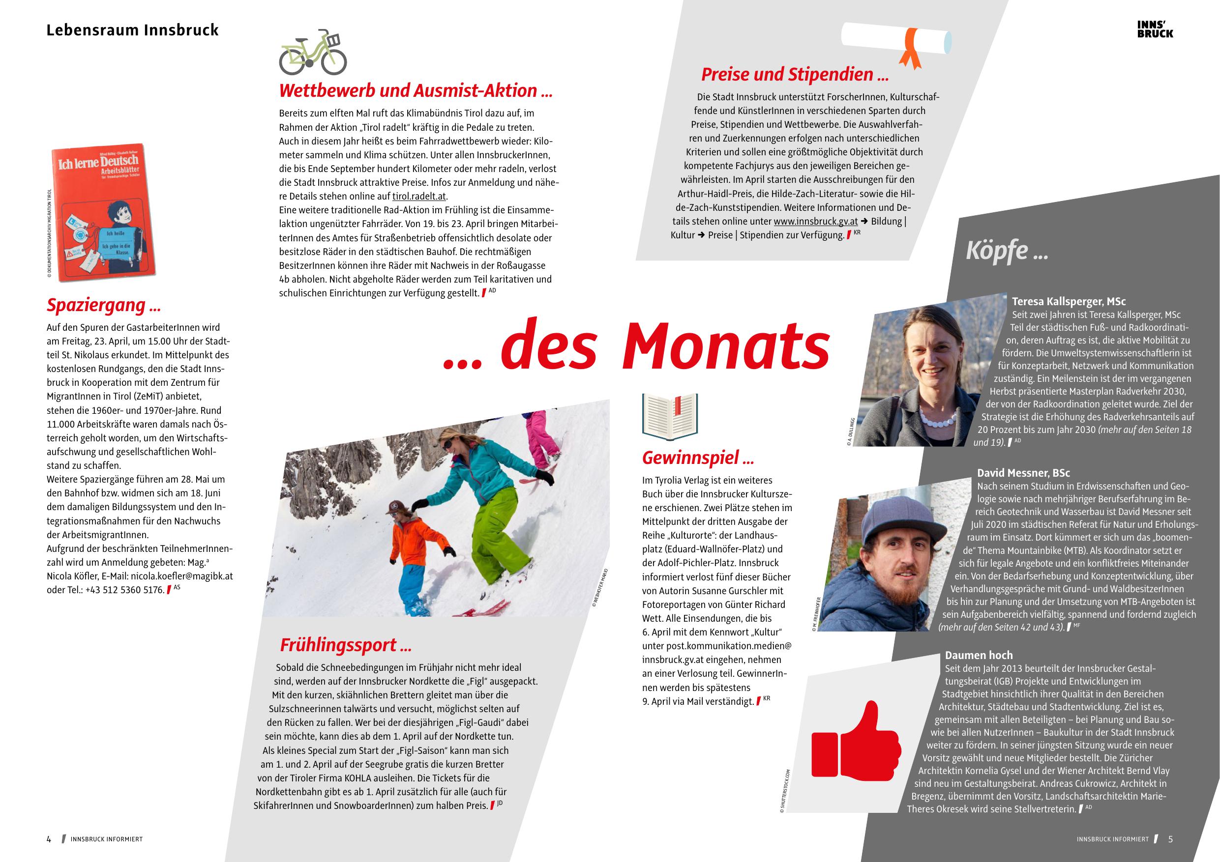 die Stadt Innsbruck attraktive Preise. Infos zur Anmeldung und nähere Details stehen online auf tirol.radelt.at.