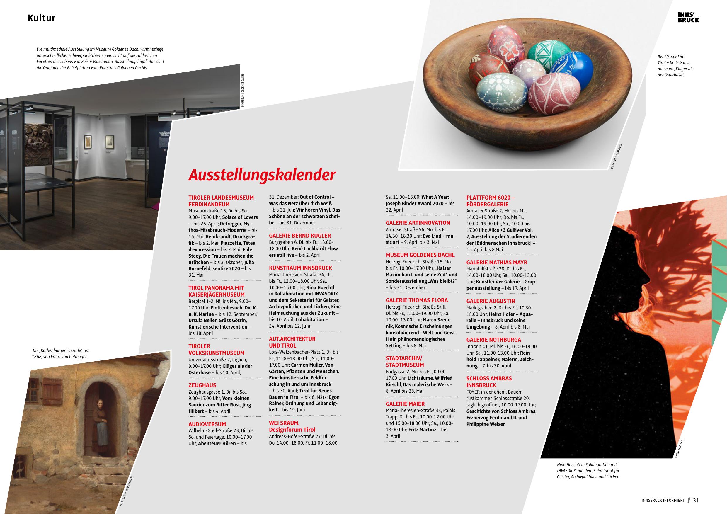– bis 30. April; Tirol für Neues
