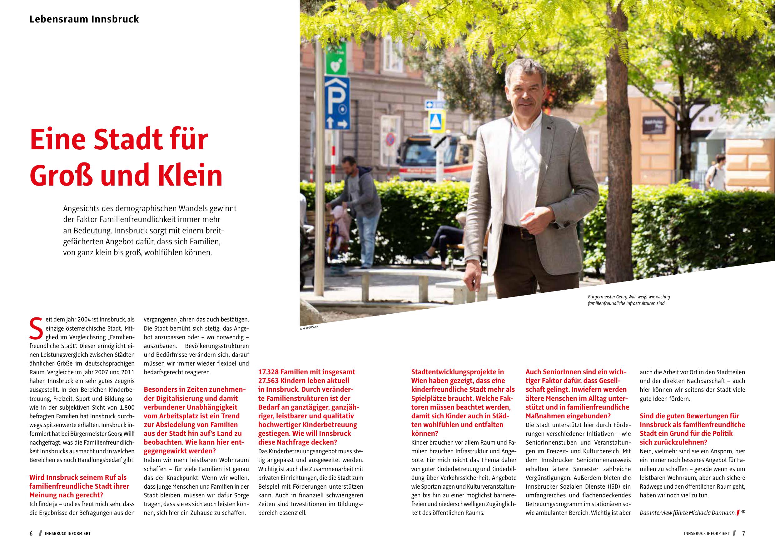 befragten Familien hat Innsbruck durchwegs Spitzenwerte erhalten. Innsbruck informiert hat bei Bürgermeister Georg Willi