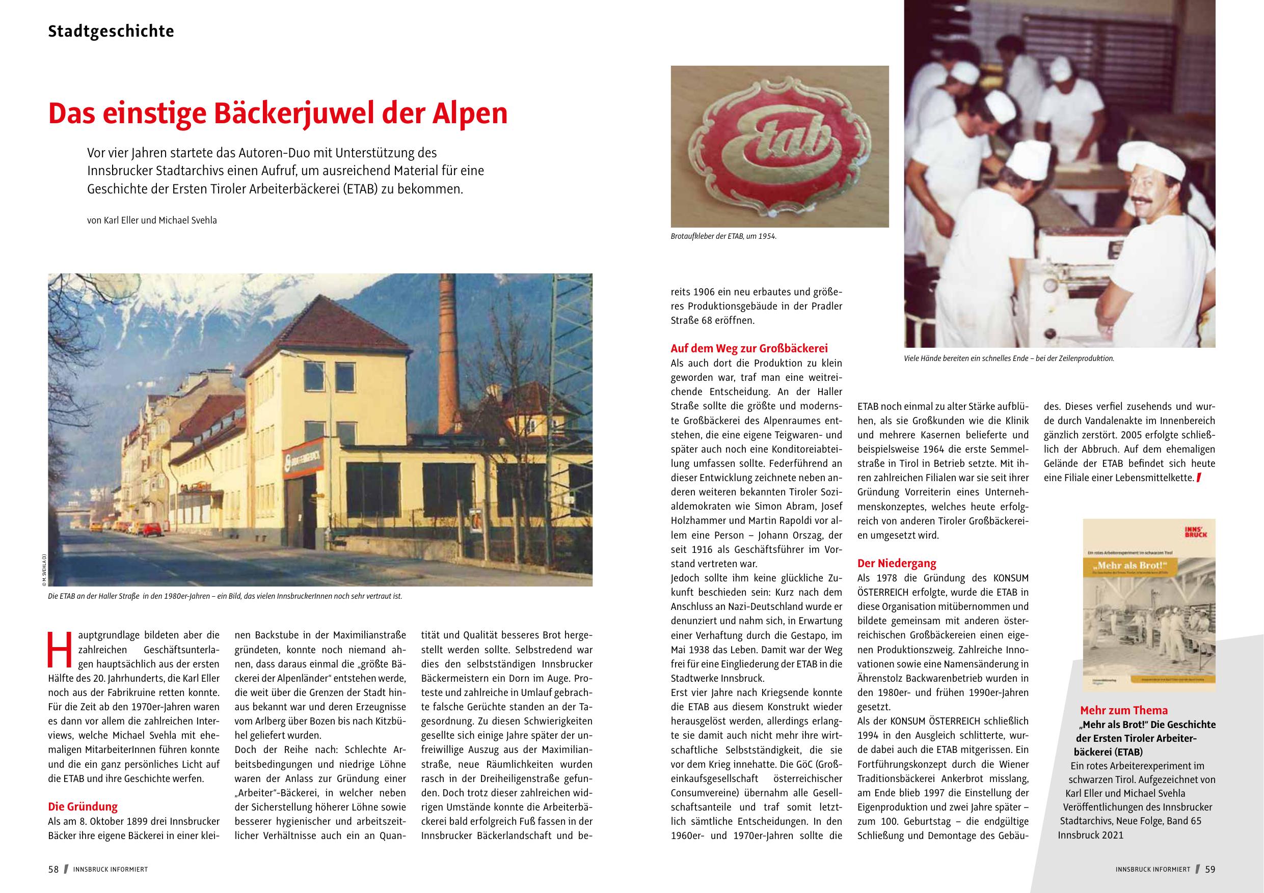 Geschichte der Ersten Tiroler Arbeiterbäckerei (ETAB) zu bekommen.