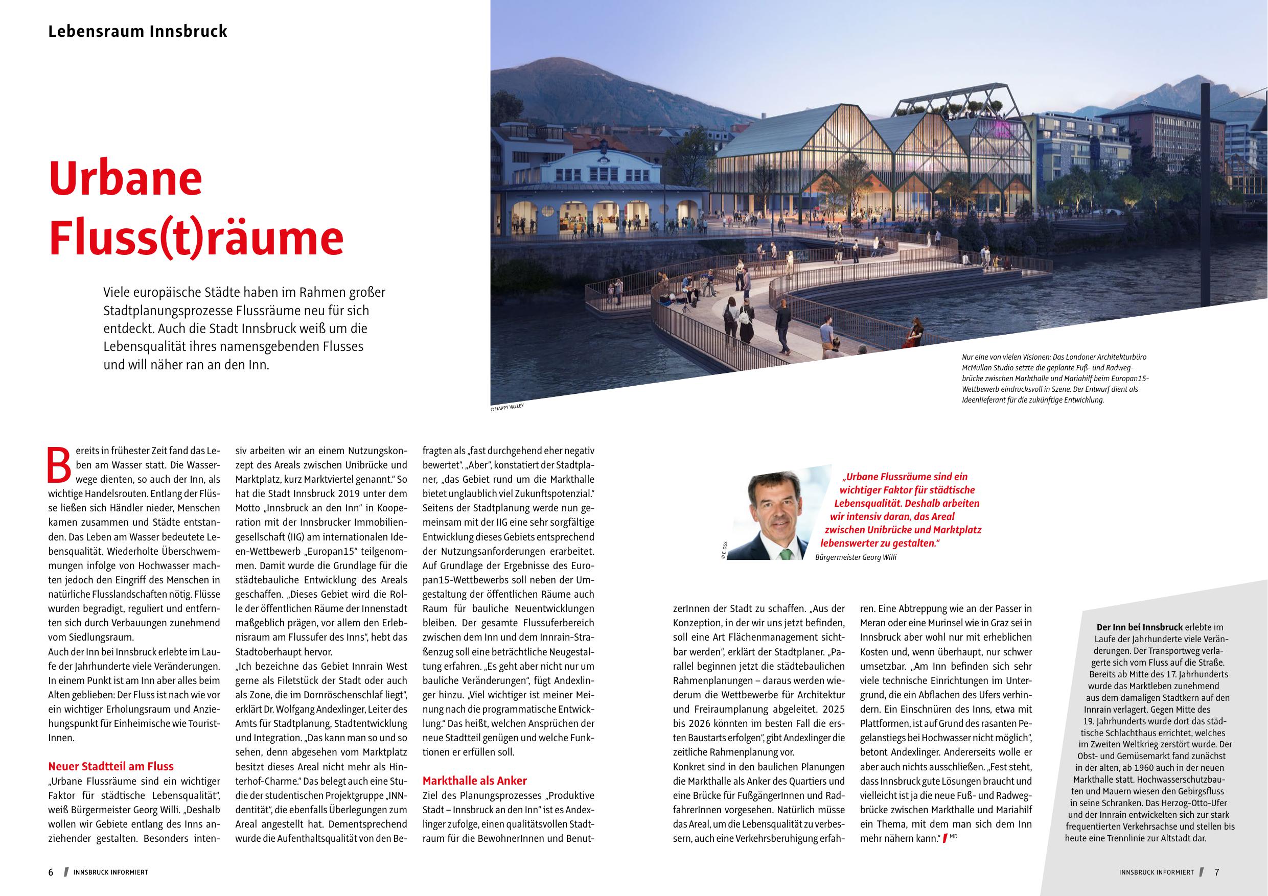 Motto „Innsbruck an den Inn“ in Kooperation mit der Innsbrucker Immobiliengesellschaft (IIG) am internationalen Ideen-Wettbewerb „Europan15“ teilgenommen. Damit wurde die Grundlage für die