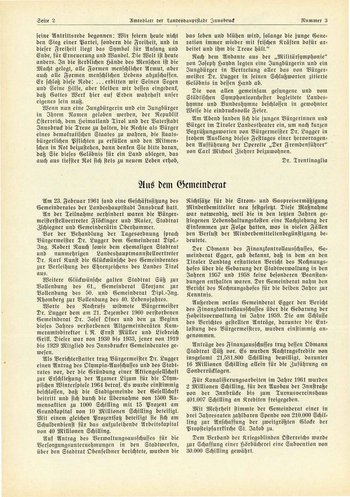 Gemeinderates der Landeshauptstadt Innsbruck statt.