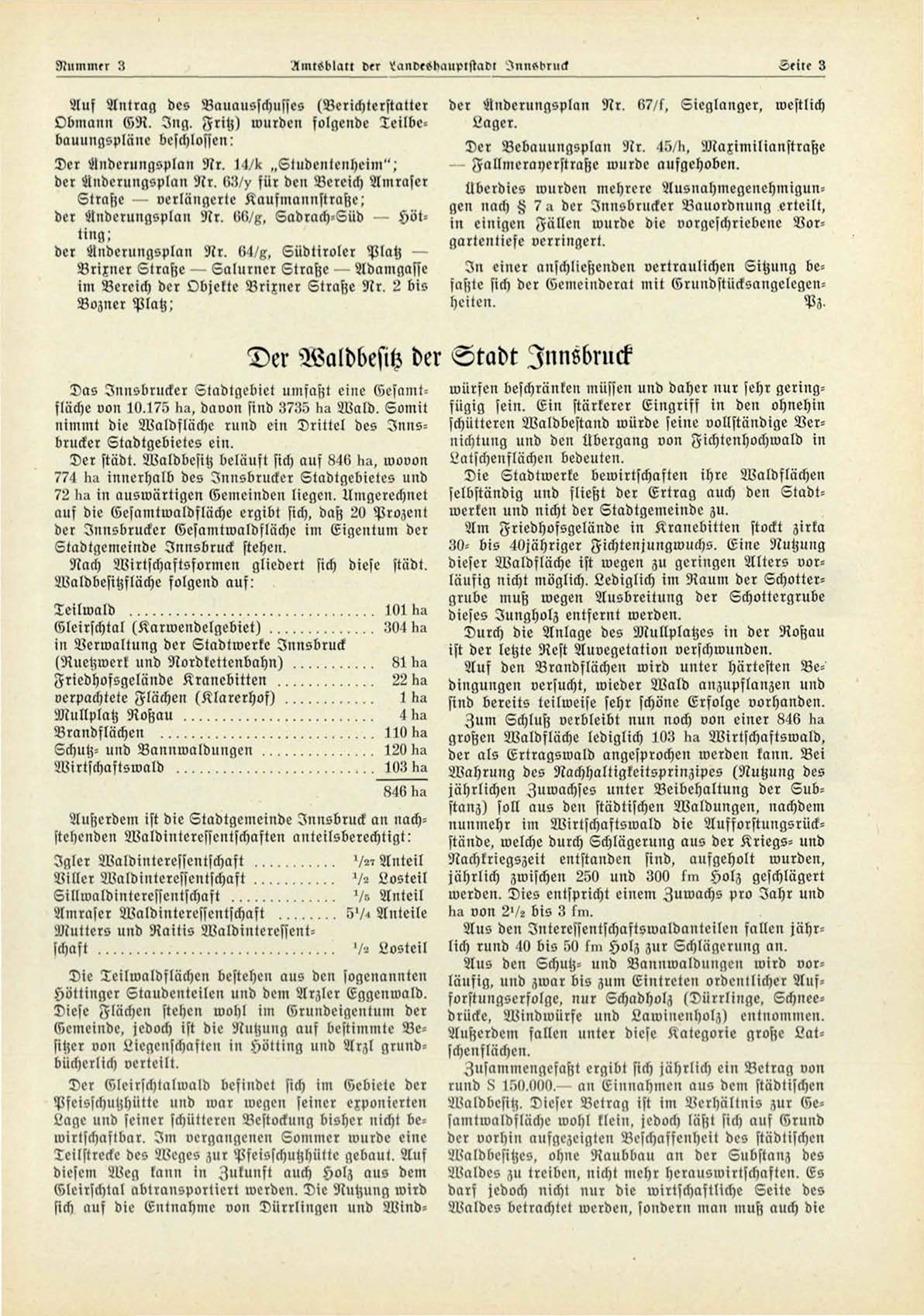 Das Innsbrucker Stadtgebiet umfaßt eine Gesamtfläche von 10.17li ba, davon sind :i?:;5 ka Wald. Somit