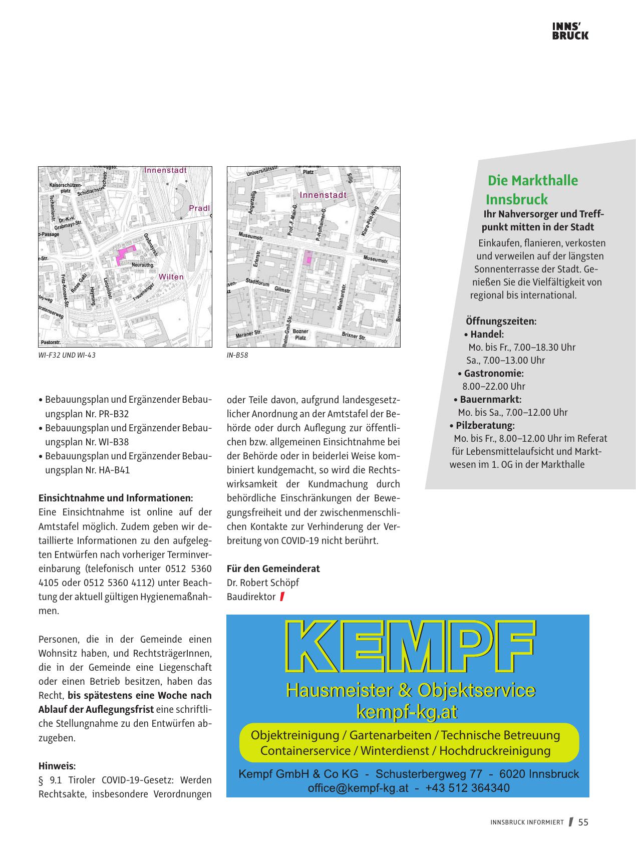 Amtstafel möglich. Zudem geben wir detaillierte Informationen zu den aufgelegten Entwürfen nach vorheriger Terminvereinbarung (telefonisch unter 0512 5360