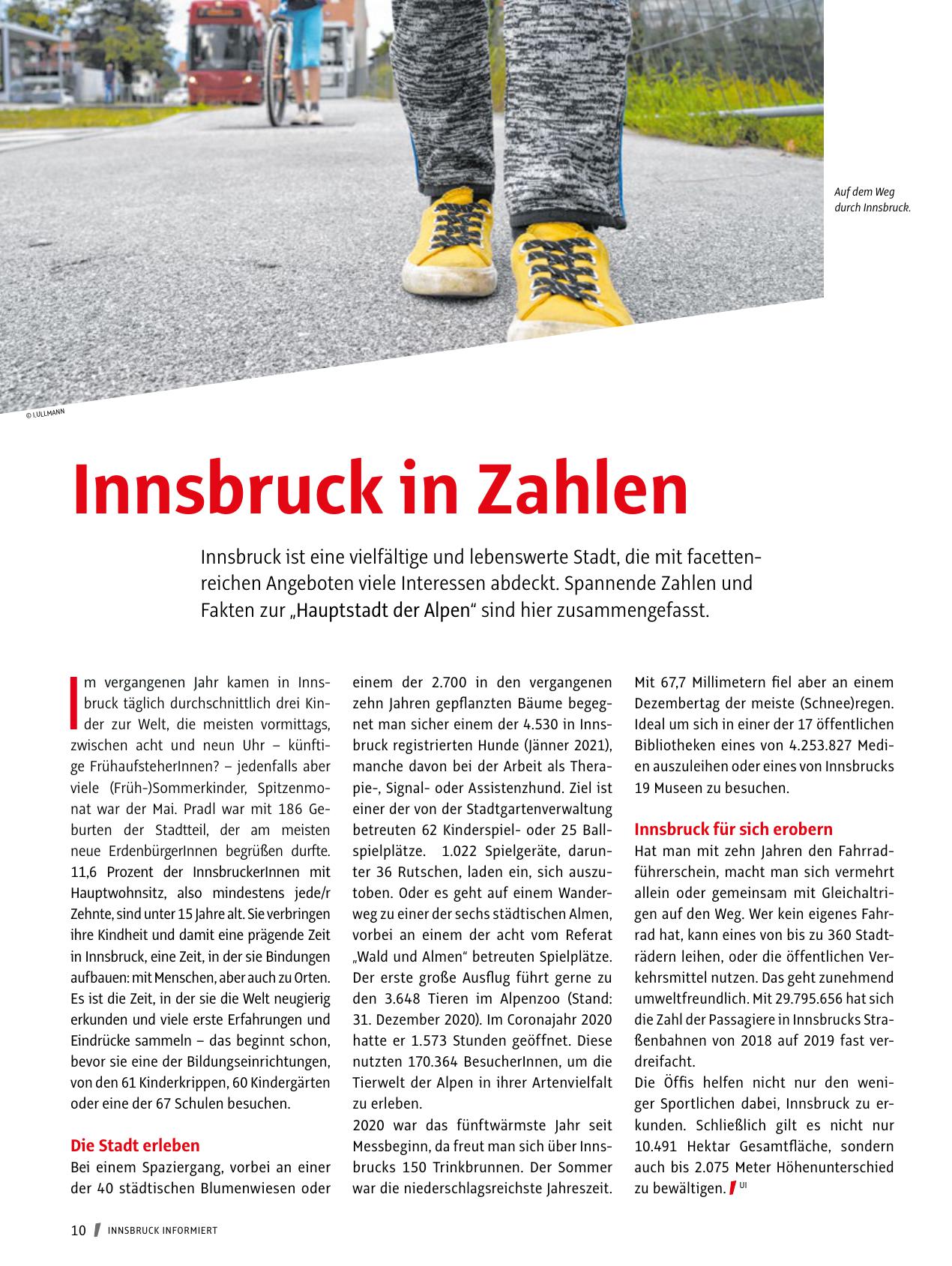 Innsbruck ist eine vielfältige und lebenswerte Stadt, die mit facettenreichen Angeboten viele Interessen abdeckt. Spannende Zahlen und