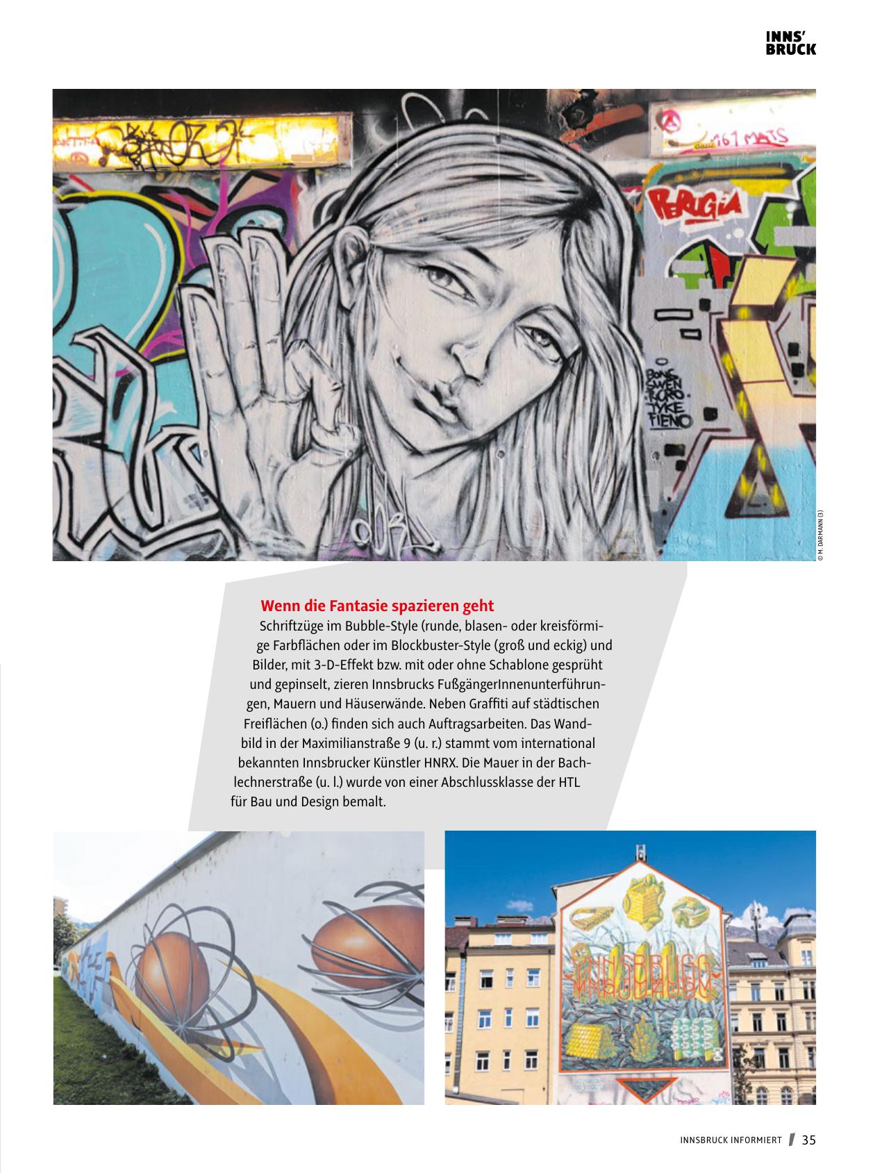 bekannten Innsbrucker Künstler HNRX. Die Mauer in der Bachlechnerstraße (u. l.) wurde von einer Abschlussklasse der HTL