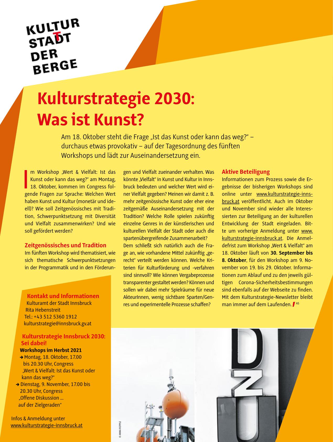online unter www.kulturstrategie-innsbruck.at veröffentlicht. Auch im Oktober