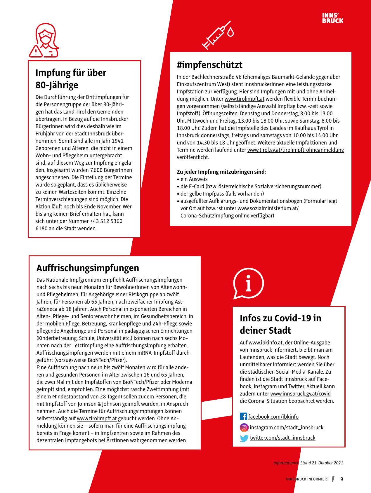 finden ist die Stadt Innsbruck auf Facebook, Instagram und Twitter. Aktuell kann