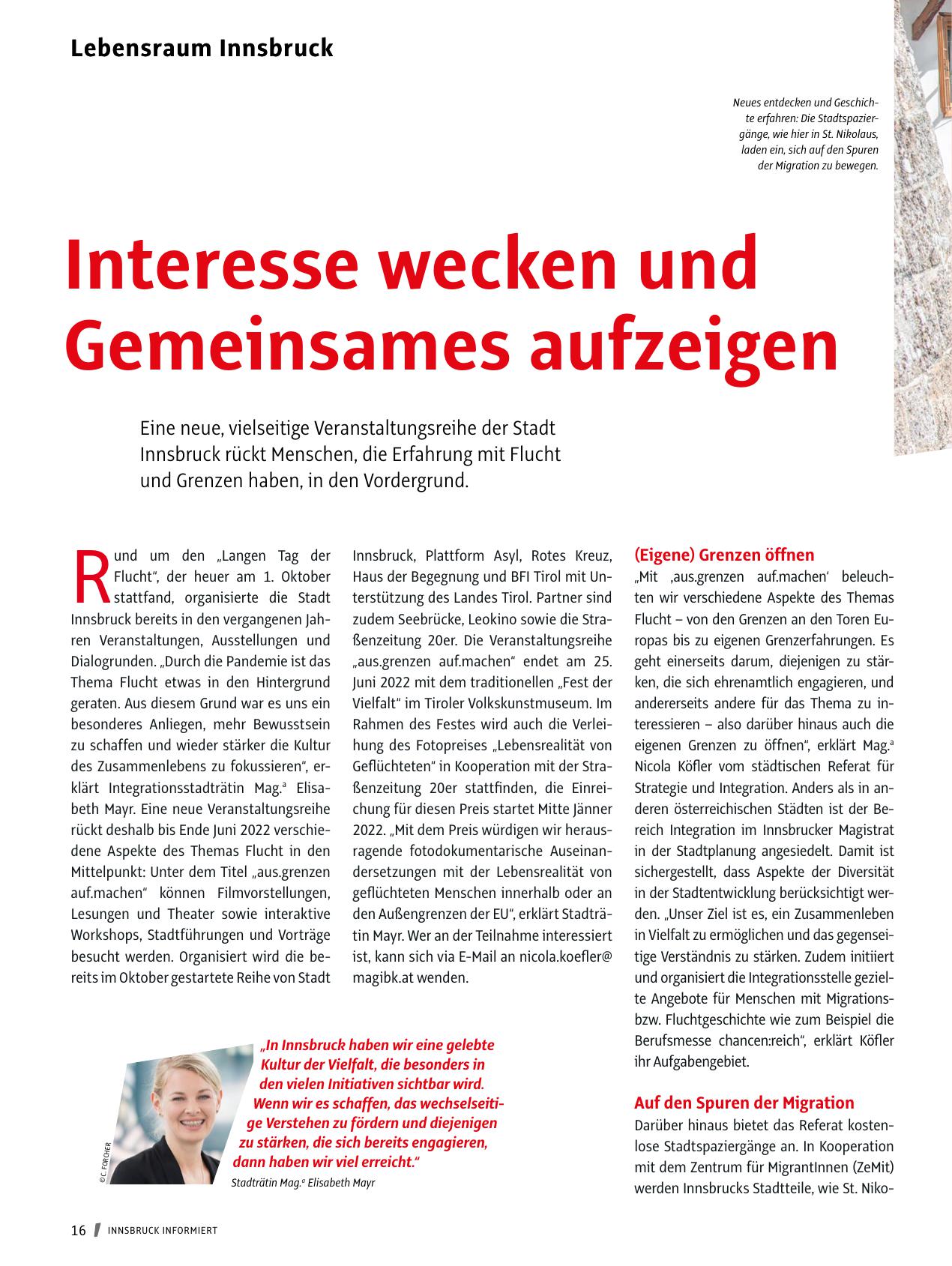des Zusammenlebens zu fokussieren“, erklärt Integrationsstadträtin Mag.a Elisabeth Mayr. Eine neue Veranstaltungsreihe