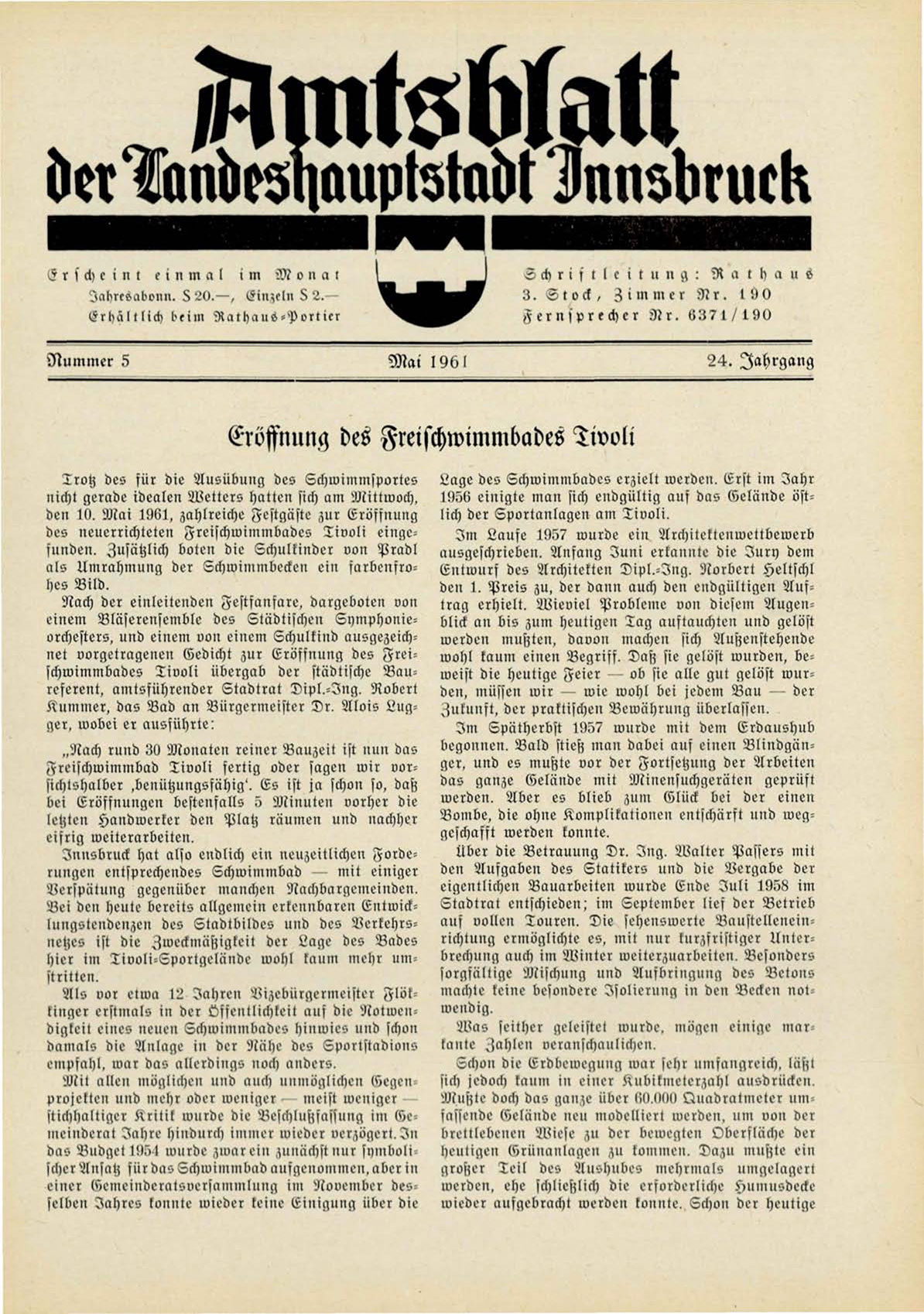 Innsbruck hat also endlich ein neuzeitlichen Forderungen entsprechendes Schwimmbad — mit einiger