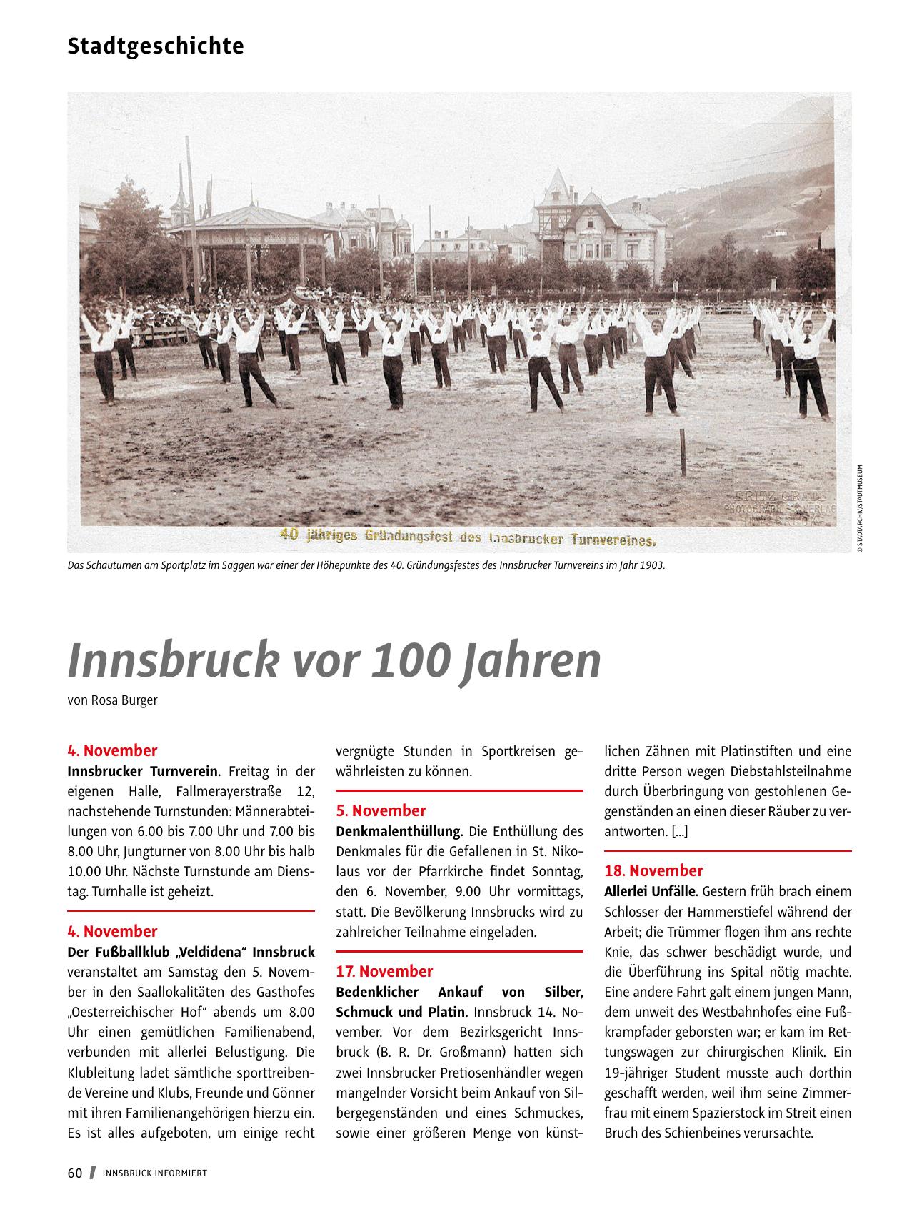 Das Schauturnen am Sportplatz im Saggen war einer der Höhepunkte des 40. Gründungsfestes des Innsbrucker Turnvereins im Jahr 1903.