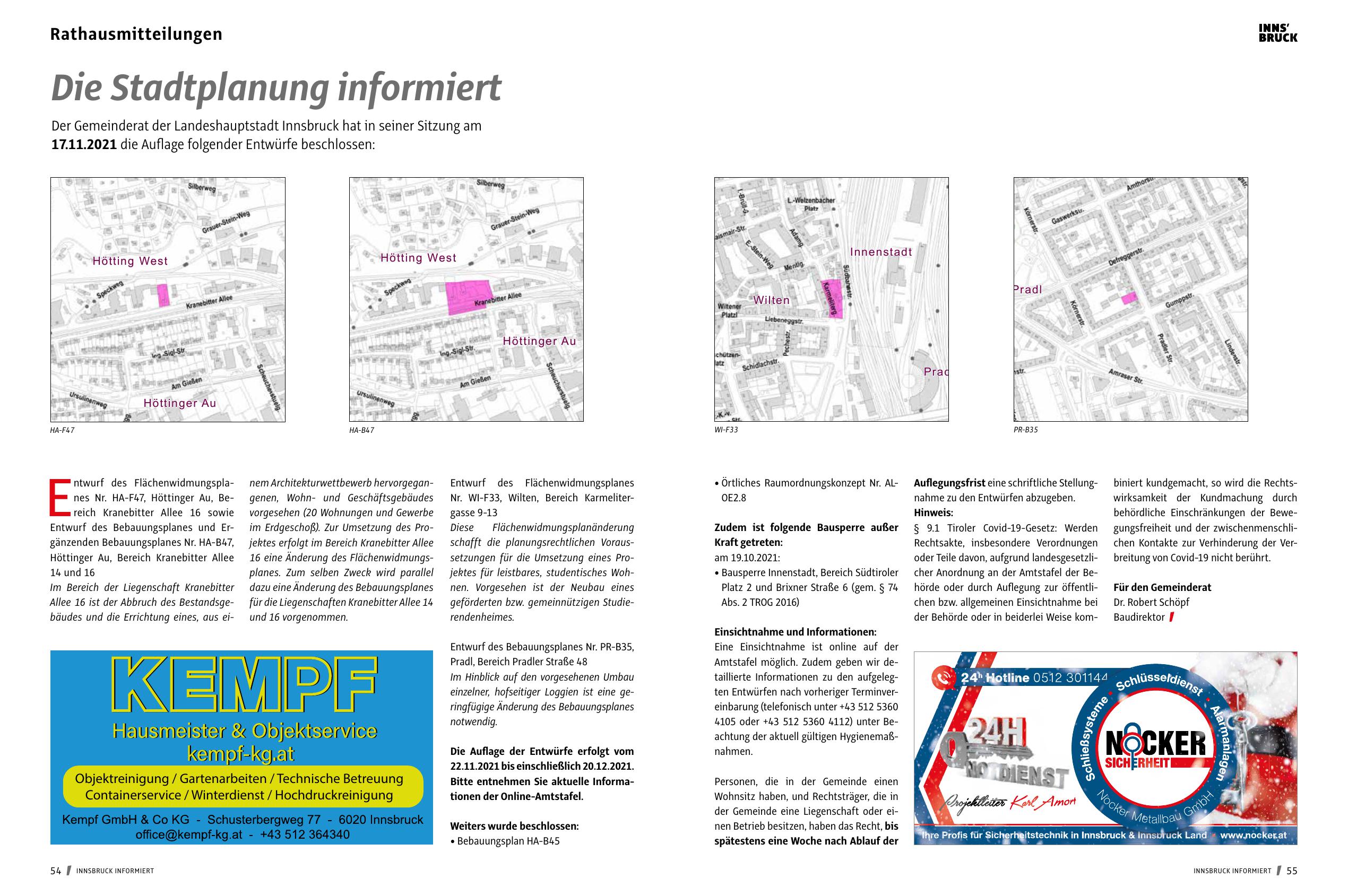 Amtstafel möglich. Zudem geben wir detaillierte Informationen zu den aufgelegten Entwürfen nach vorheriger Terminvereinbarung (telefonisch unter +43 512 5360