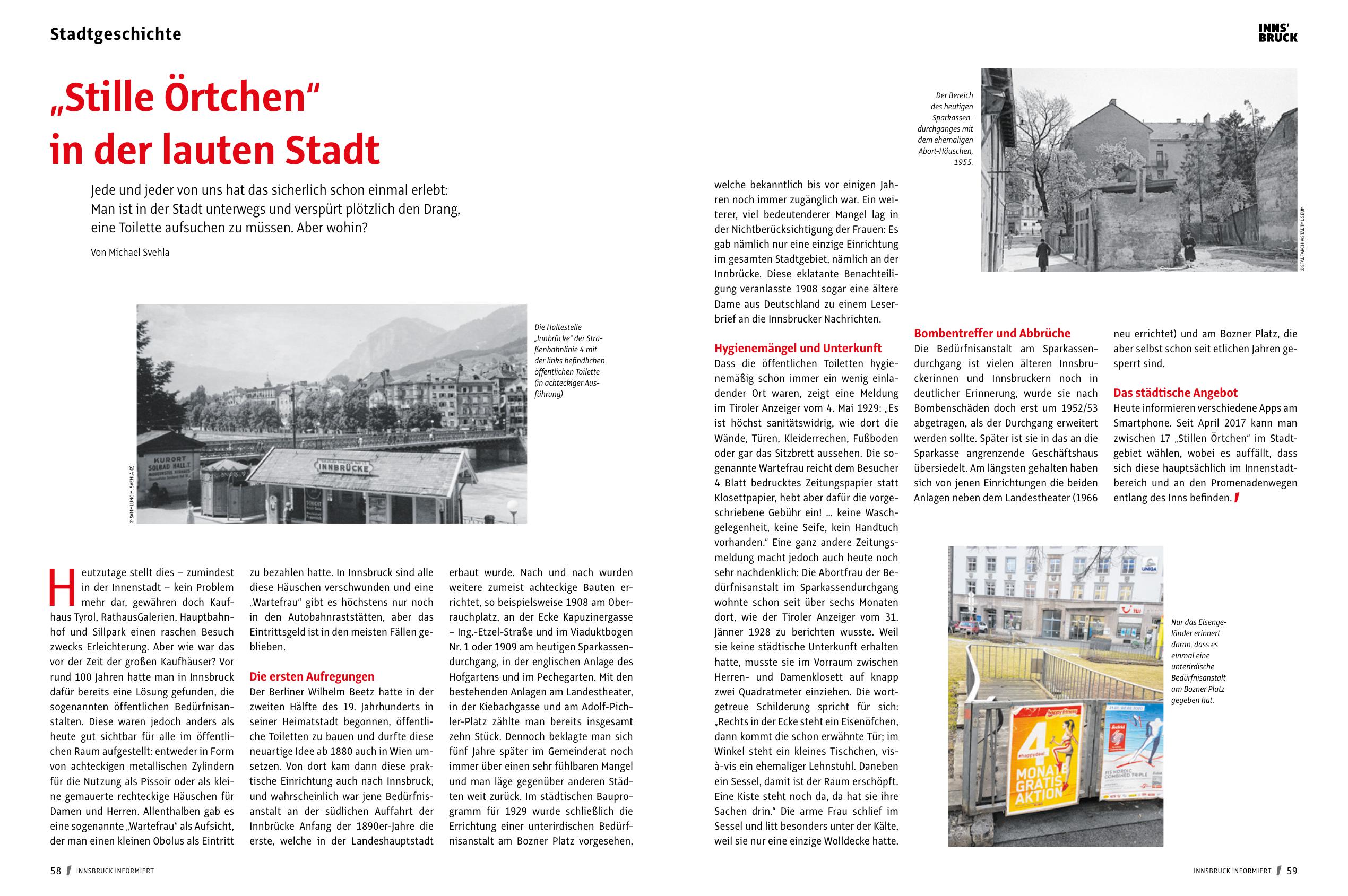 Die Bedürfnisanstalt am Sparkassendurchgang ist vielen älteren Innsbruckerinnen und Innsbruckern noch in