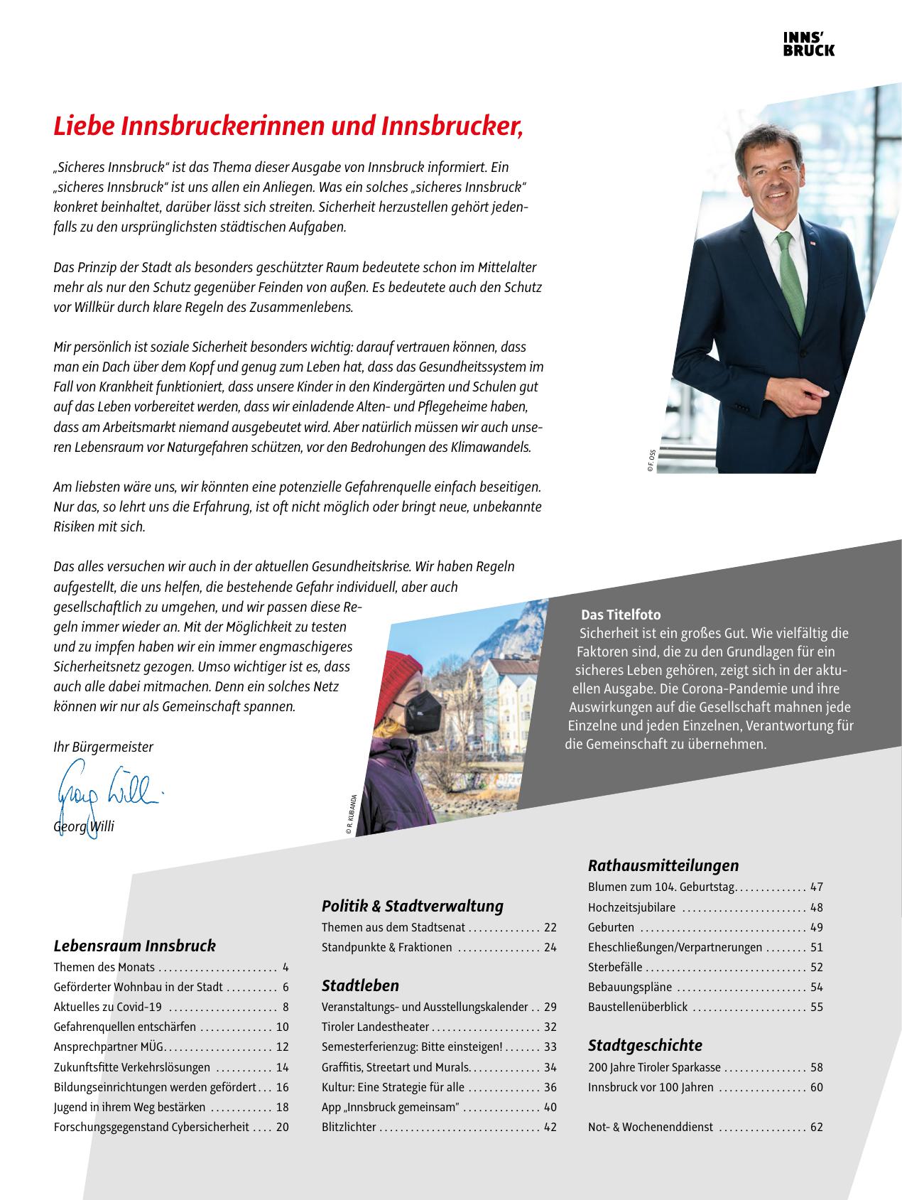 „Sicheres Innsbruck“ ist das Thema dieser Ausgabe von Innsbruck informiert. Ein