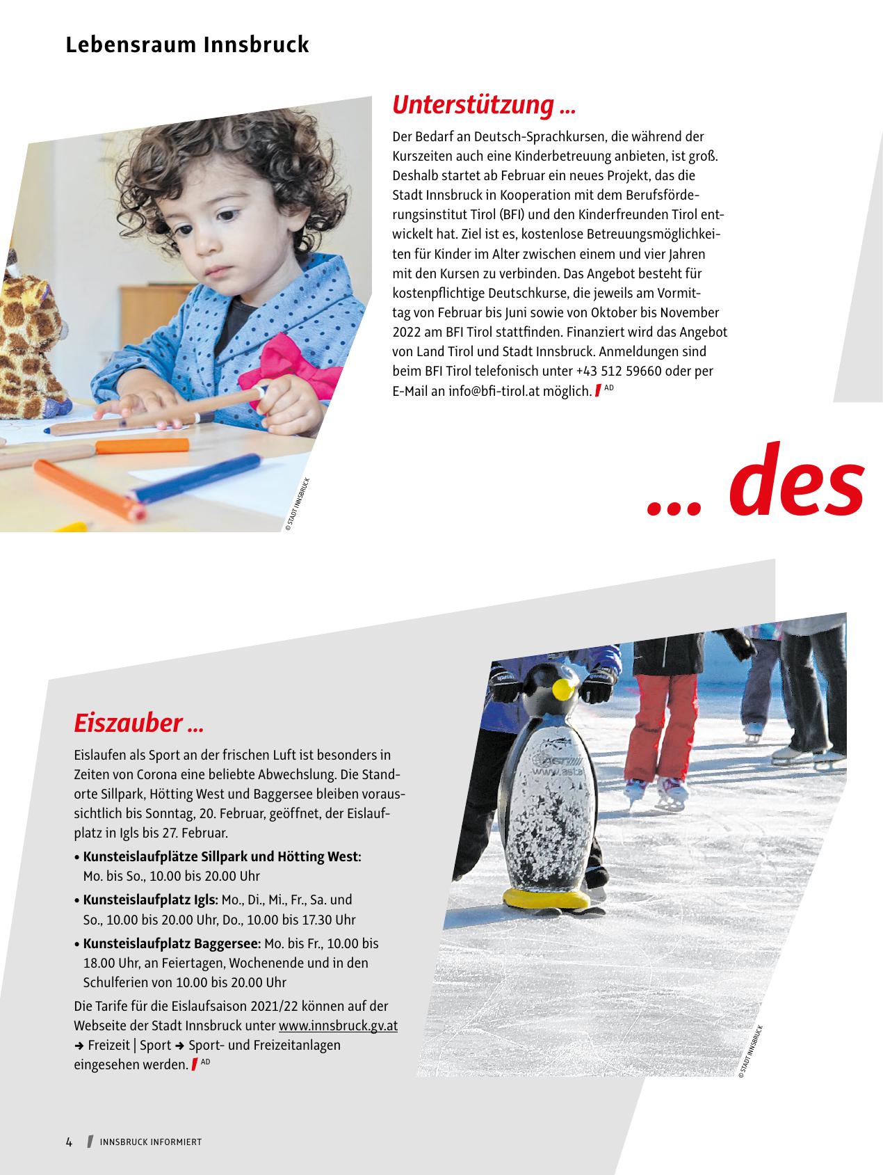 Zeiten von Corona eine beliebte Abwechslung. Die Standorte Sillpark, Hötting West und Baggersee bleiben voraussichtlich bis Sonntag, 20. Februar, geöffnet, der Eislaufplatz in Igls bis 27. Februar.