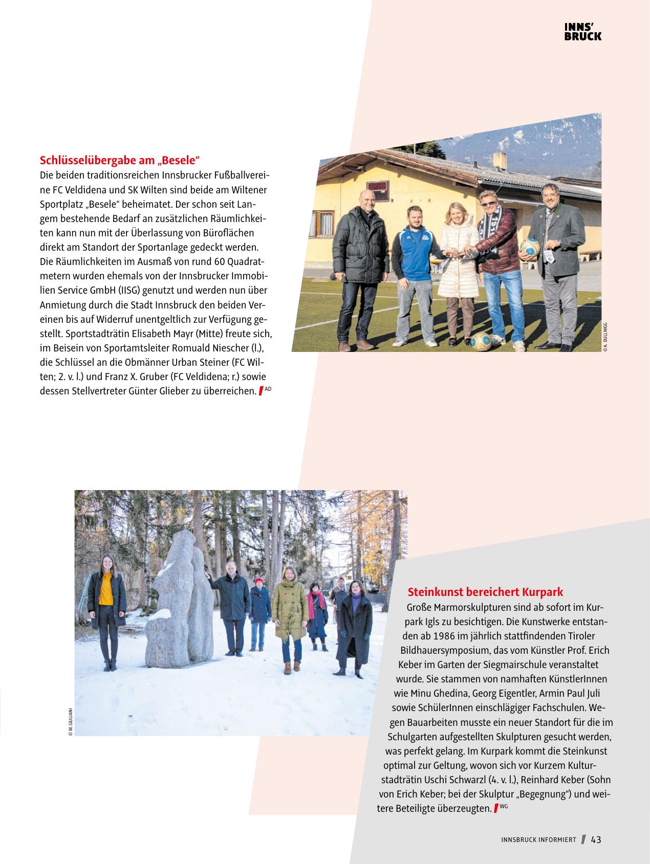Anmietung durch die Stadt Innsbruck den beiden Vereinen bis auf Widerruf unentgeltlich zur Verfügung gestellt. Sportstadträtin Elisabeth Mayr (Mitte) freute sich,