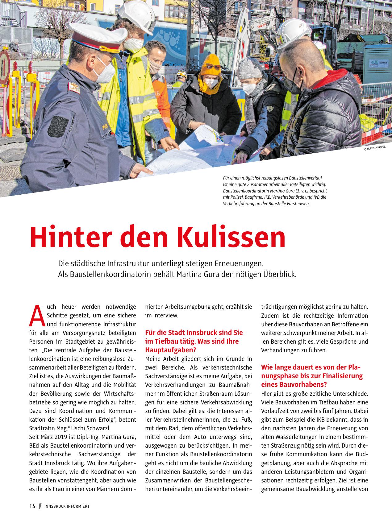 Stadt Innsbruck tätig. Wo ihre Aufgabengebiete liegen, wie die Koordination von