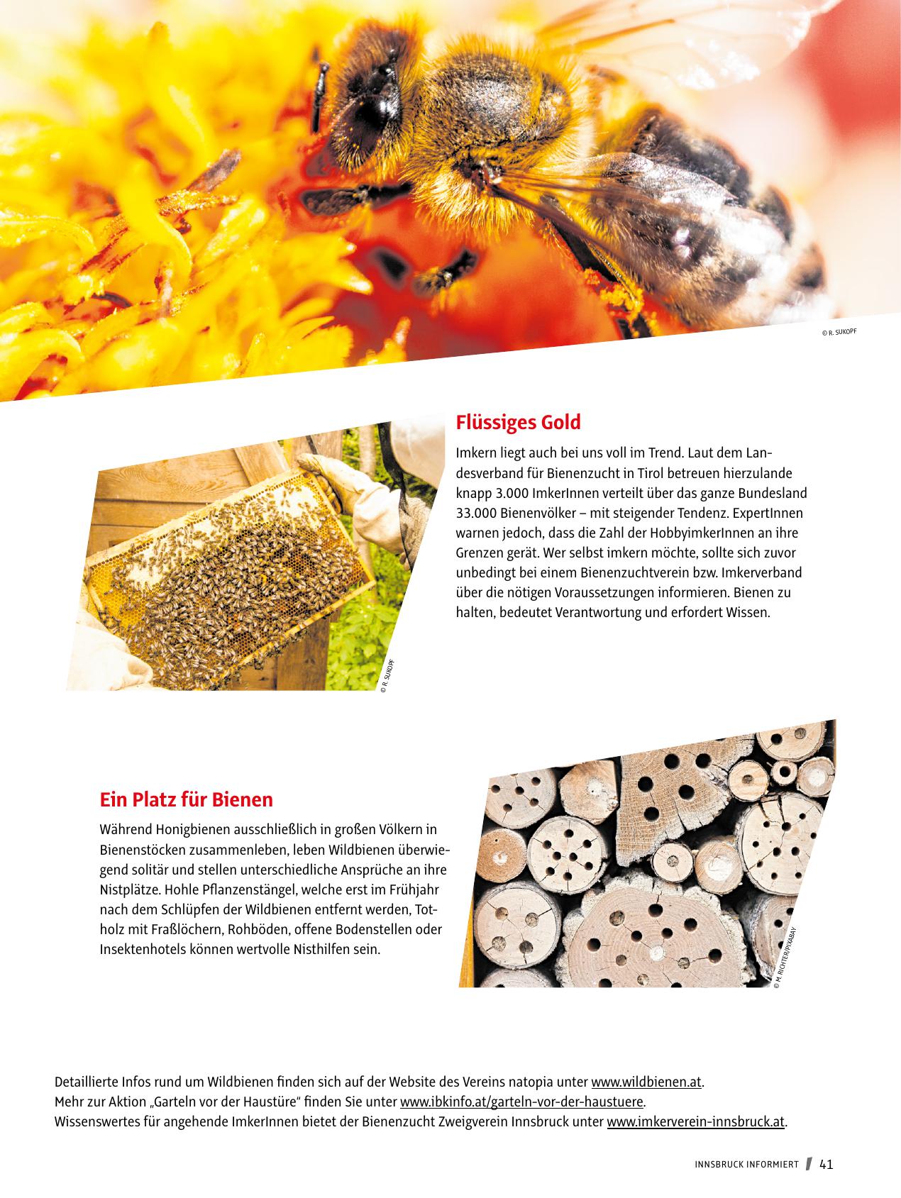 Wissenswertes für angehende ImkerInnen bietet der Bienenzucht Zweigverein Innsbruck unter www.imkerverein-innsbruck.at.