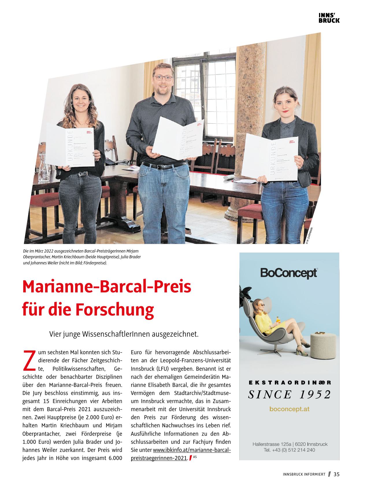 Sie unter www.ibkinfo.at/marianne-barcalpreistraegerinnen-2021. AS