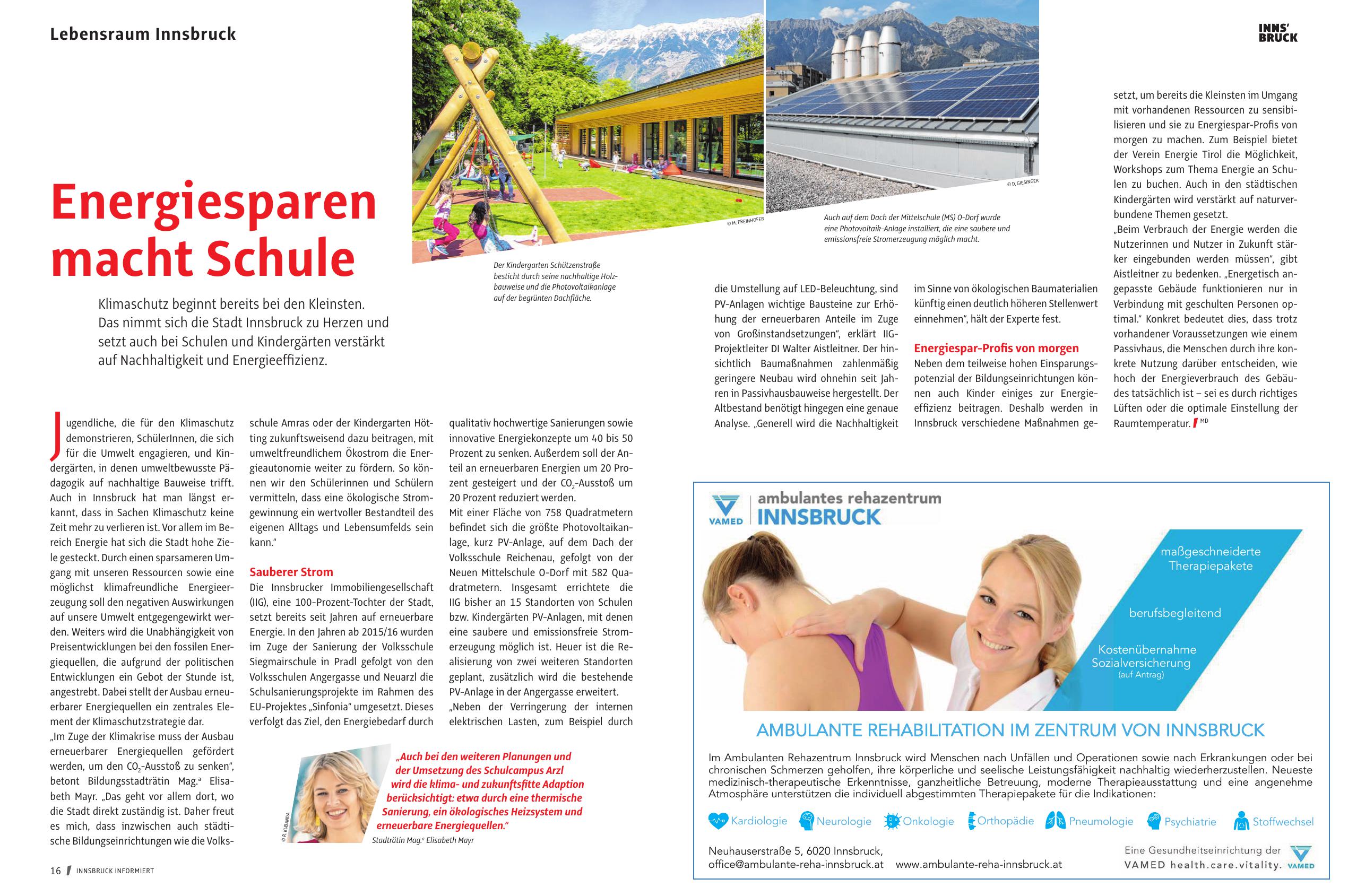 schule Amras oder der Kindergarten Hötting zukunftsweisend dazu beitragen, mit