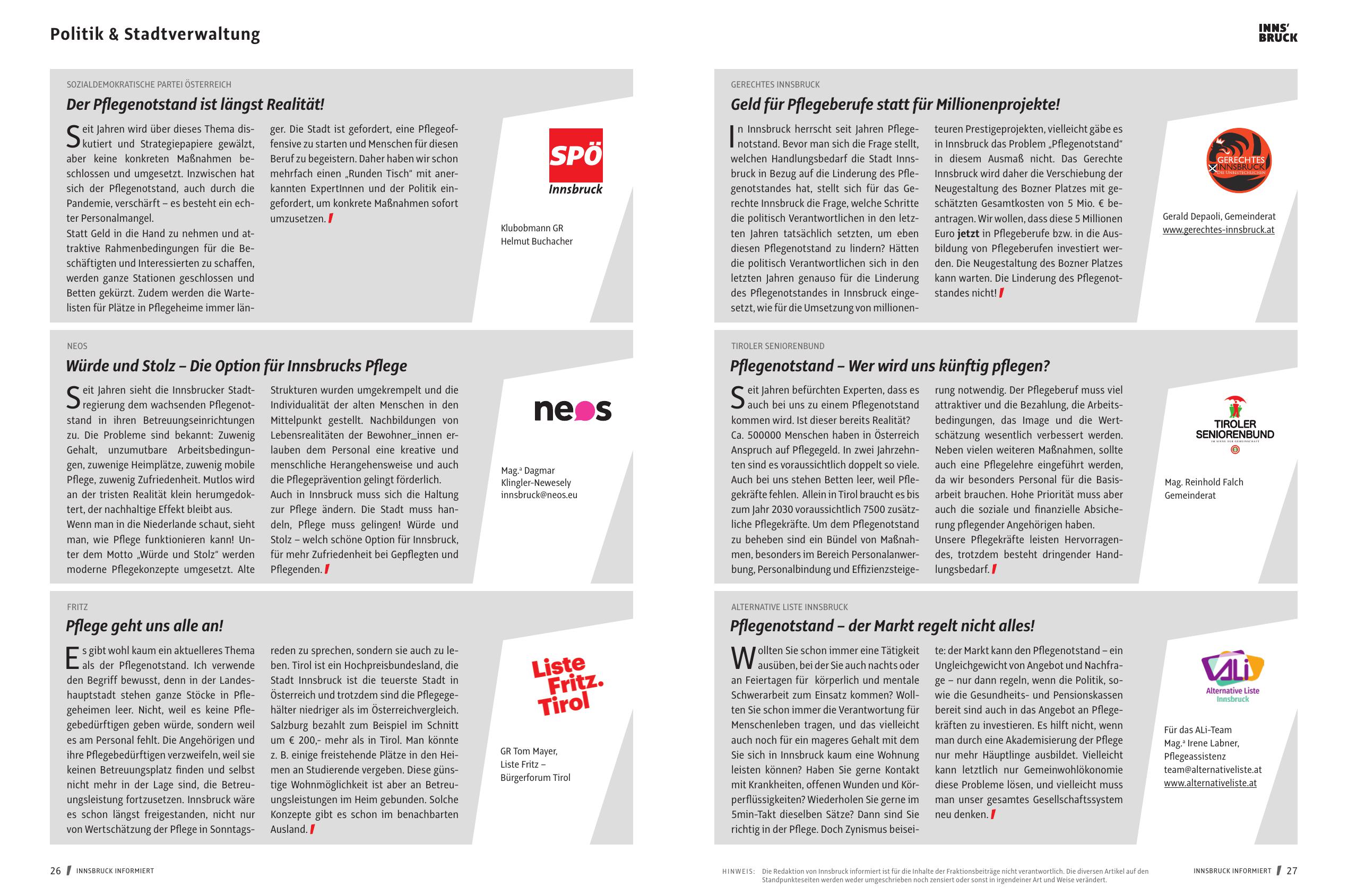 des Pflegenotstandes in Innsbruck eingesetzt, wie für die Umsetzung von millionen-