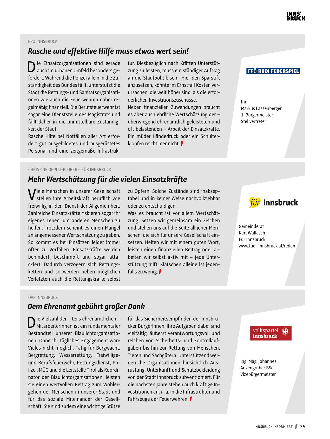 für das Sicherheitsempfinden der Innsbrucker BürgerInnen. Ihre Aufgaben dabei sind
