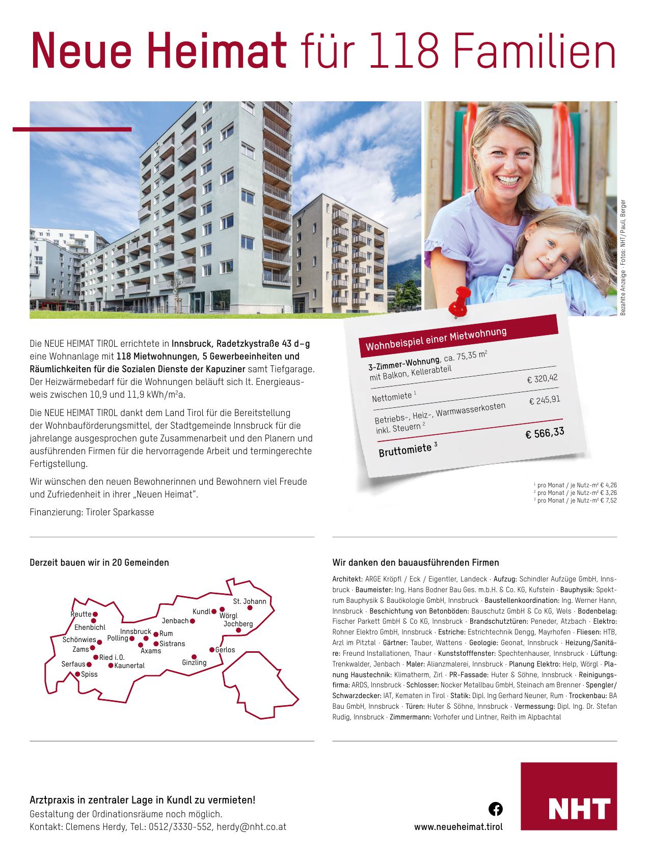 Die NEUE HEIMAT TIROL dankt dem Land Tirol für die Bereitstellung