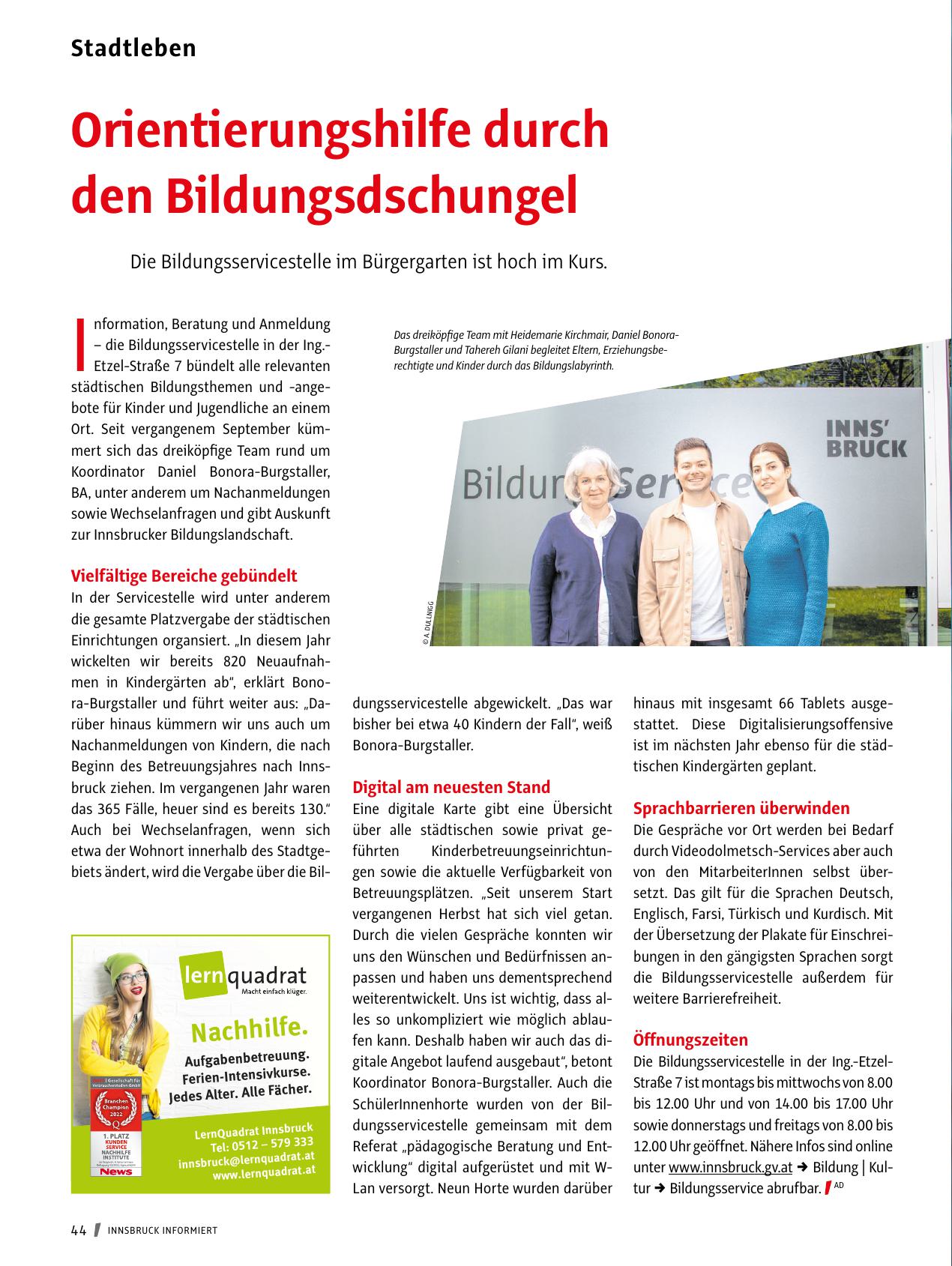 unter www.innsbruck.gv.at , Bildung | Kultur , Bildungsservice abrufbar. AD