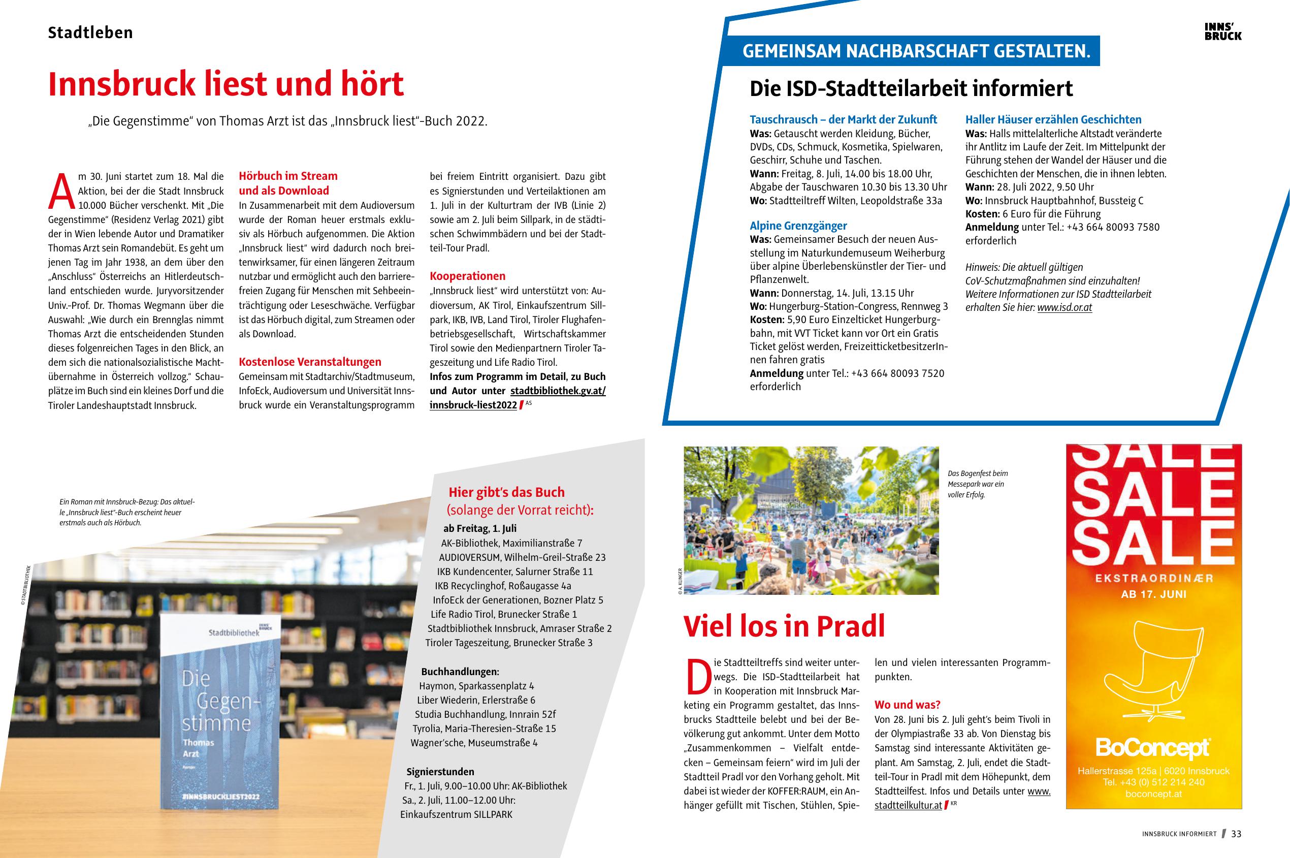in Kooperation mit Innsbruck Marketing ein Programm gestaltet, das Innsbrucks Stadtteile belebt und bei der Bevölkerung gut ankommt. Unter dem Motto