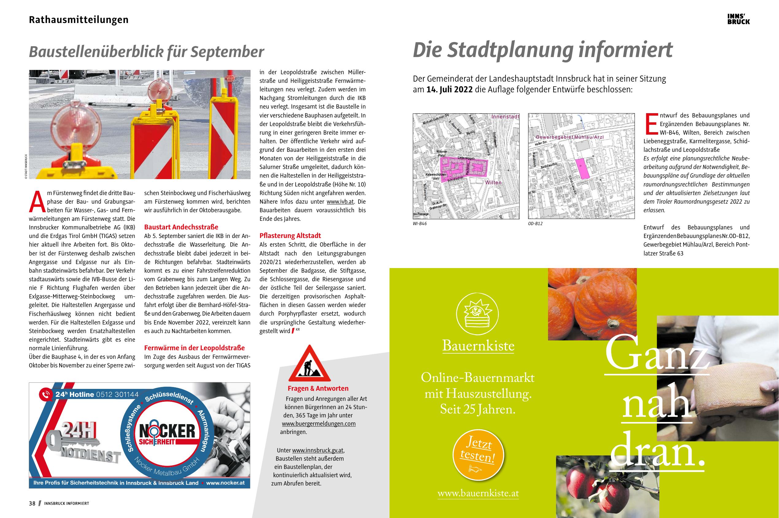 Ab 5. September saniert die IKB in der Andechsstraße die Wasserleitung. Die Andechsstraße bleibt dabei jederzeit in beide Richtungen befahrbar. Stadteinwärts