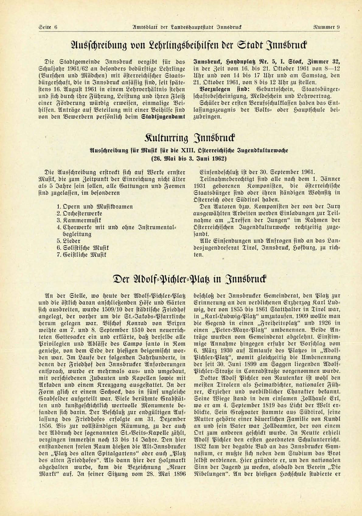 ll. März l!»Il!» auf Umtaufe des Platzes in ..AdolfPichler-Platz". womit gleichzeitig die Umbenennung