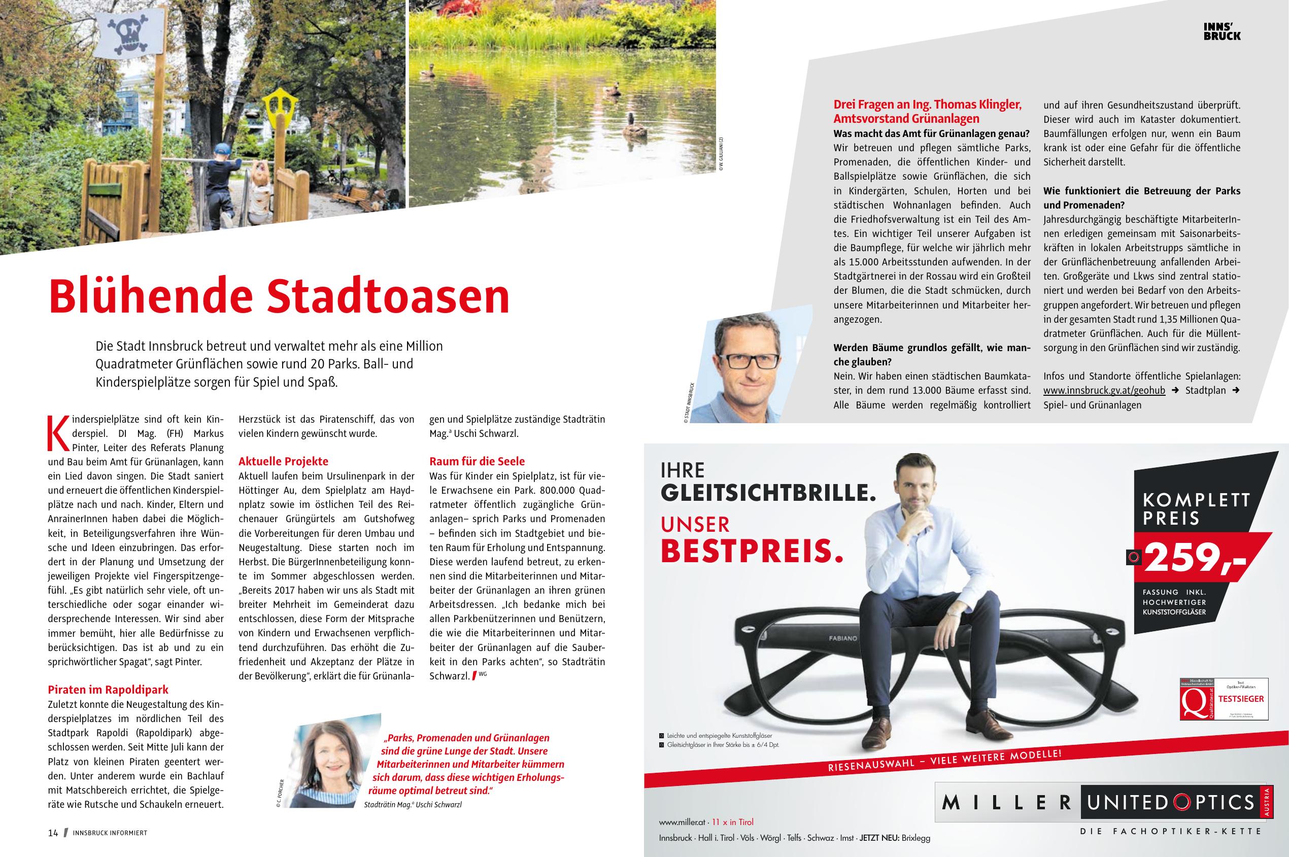 Höttinger Au, dem Spielplatz am Haydnplatz sowie im östlichen Teil des Reichenauer Grüngürtels am Gutshofweg