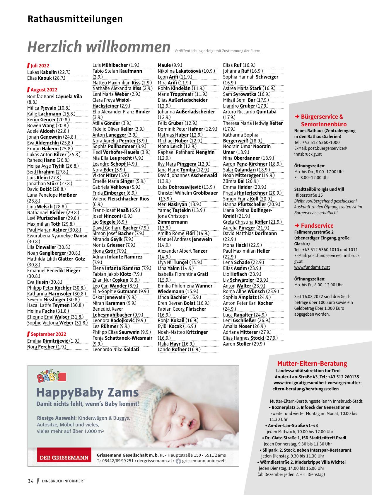 Mutter-Eltern-Beratungsstellen in Innsbruck-Stadt: