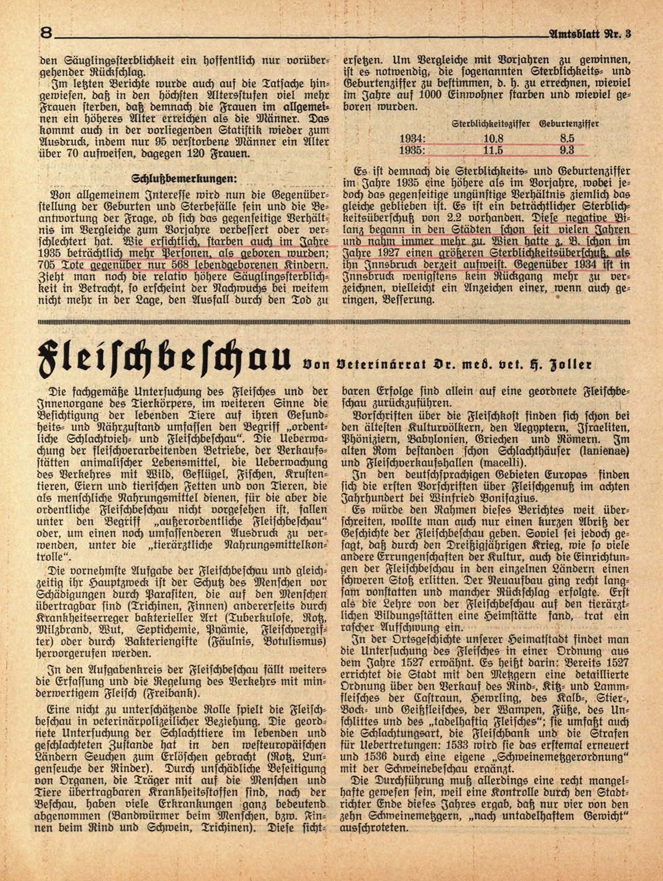 1935 beträchtlich mehr Personen, als geboren wurden;