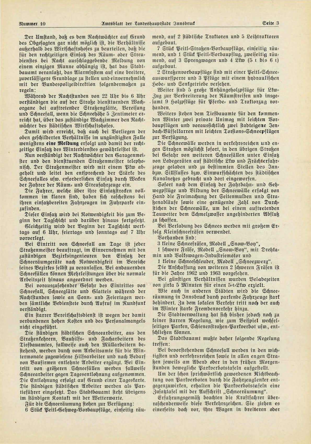 und Schneesall, wenn die Schneehöhe 5 Zentimeter erreicht hat, iiber das zuständige Wachzimmer den Nachtmächter des städtischen Wirtschaftshofes.