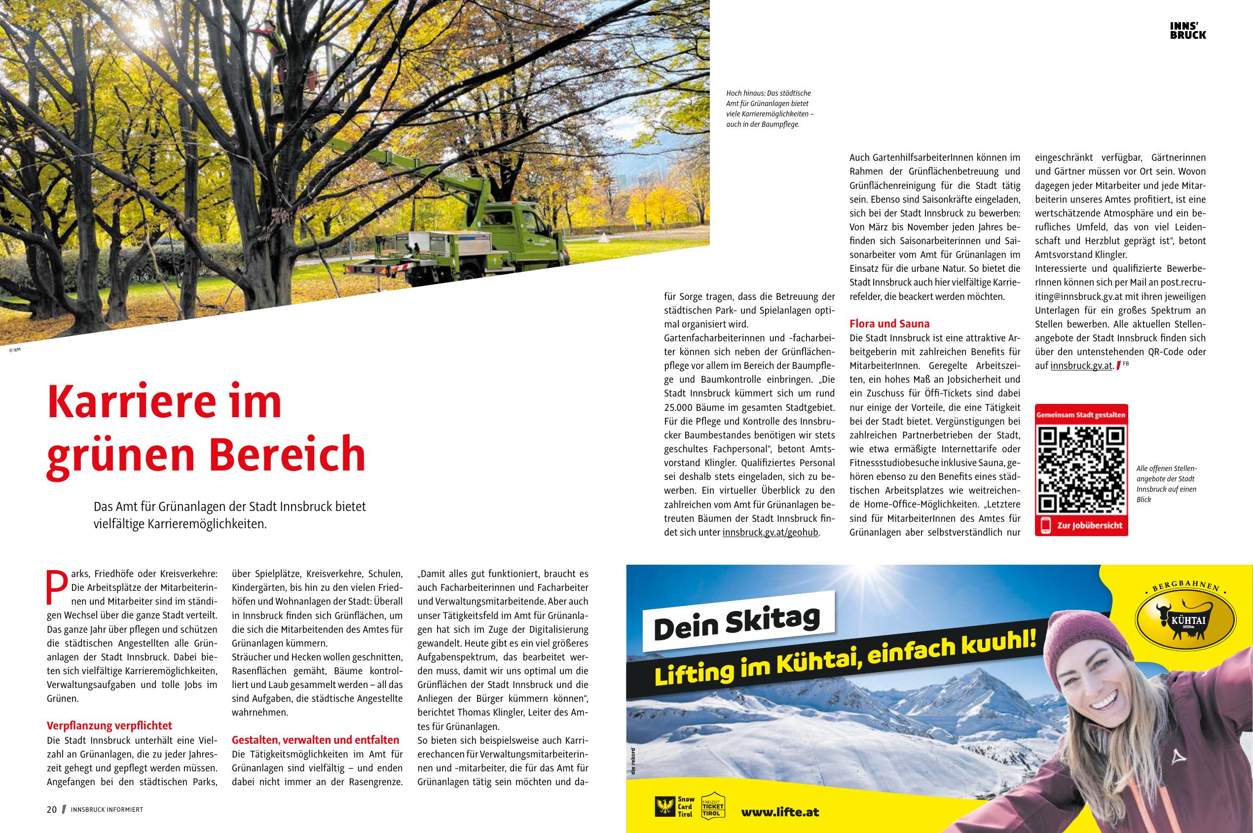 die städtischen Angestellten alle Grünanlagen der Stadt Innsbruck. Dabei bieten sich vielfältige Karrieremöglichkeiten,